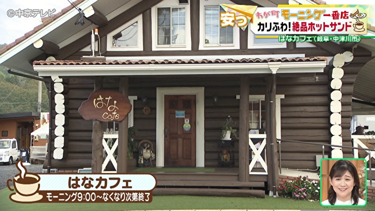 「はなカフェ」は、ログハウス風の外観が目をひくカフェです。優しく温かな雰囲気のなかモーニングをいただけます。