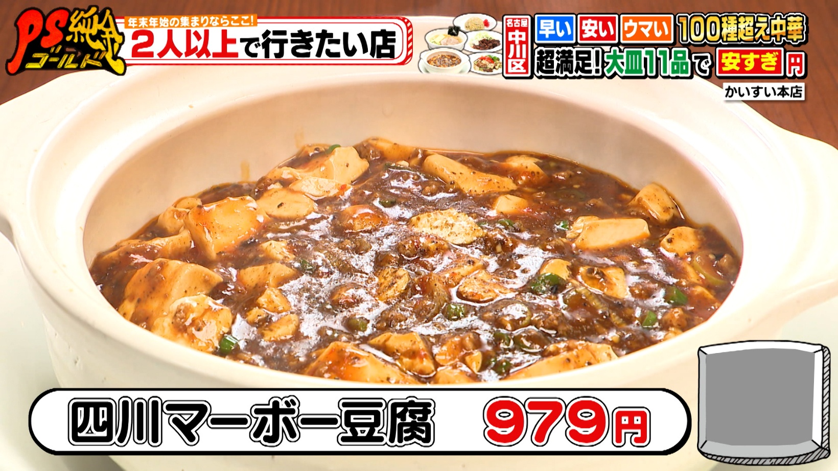 土鍋に盛られたアツアツの「四川マーボー豆腐」は、隠し味の味噌とニンニクがポイント。こちらも979円という安さで味わえます。スタジオの高田さんは、「麻婆豆腐が1,000円以下か。豆腐もしっかりしてる」とコメント。