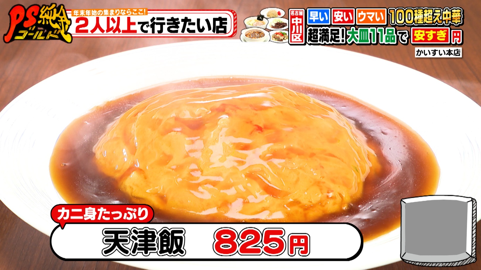 常連客おすすめの「天津飯(825円)」は、カニ身たっぷりのフワフワ卵に、甘口しょうゆダレをかけた一品。トロトロの餡かけを見たスタジオの藤森さんは、「ウマそう」と食欲をそそられたようです。