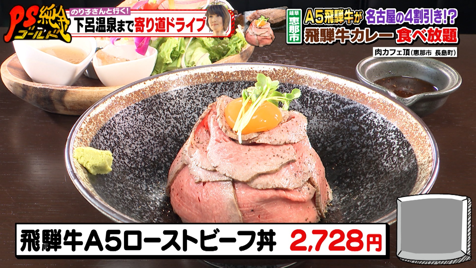 2024年1月19日放送分は、「のり子さんと行く!下呂温泉まで寄り道ドライブ」特集。大食いクイーン・大盛のり子さんが道中の名物グルメを食べ尽くします。