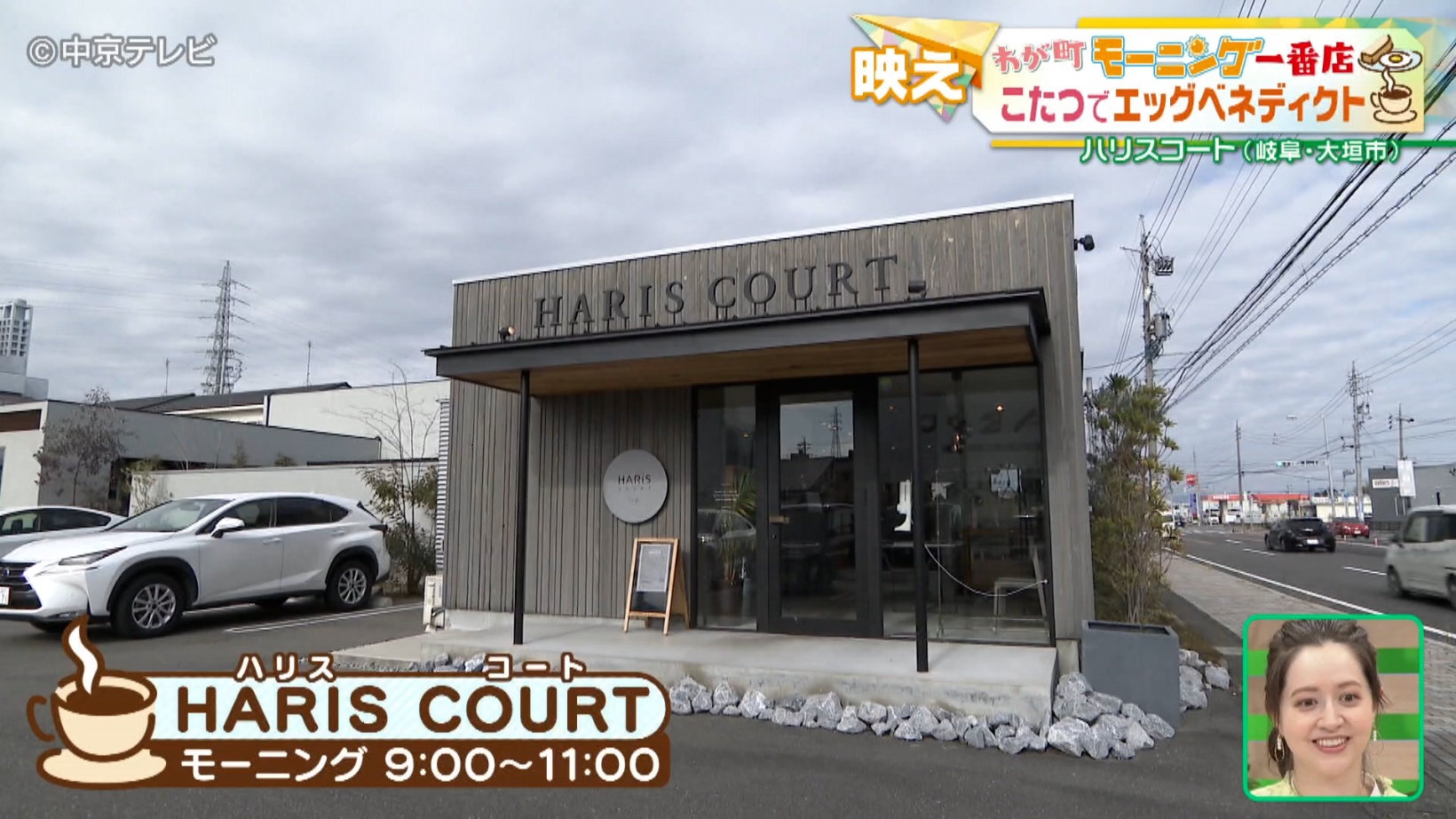 「HARIS COURT」は、オシャレな外観が目をひくお店です。店内も洗練されていて、奥にはなんとコタツの席もありました。
