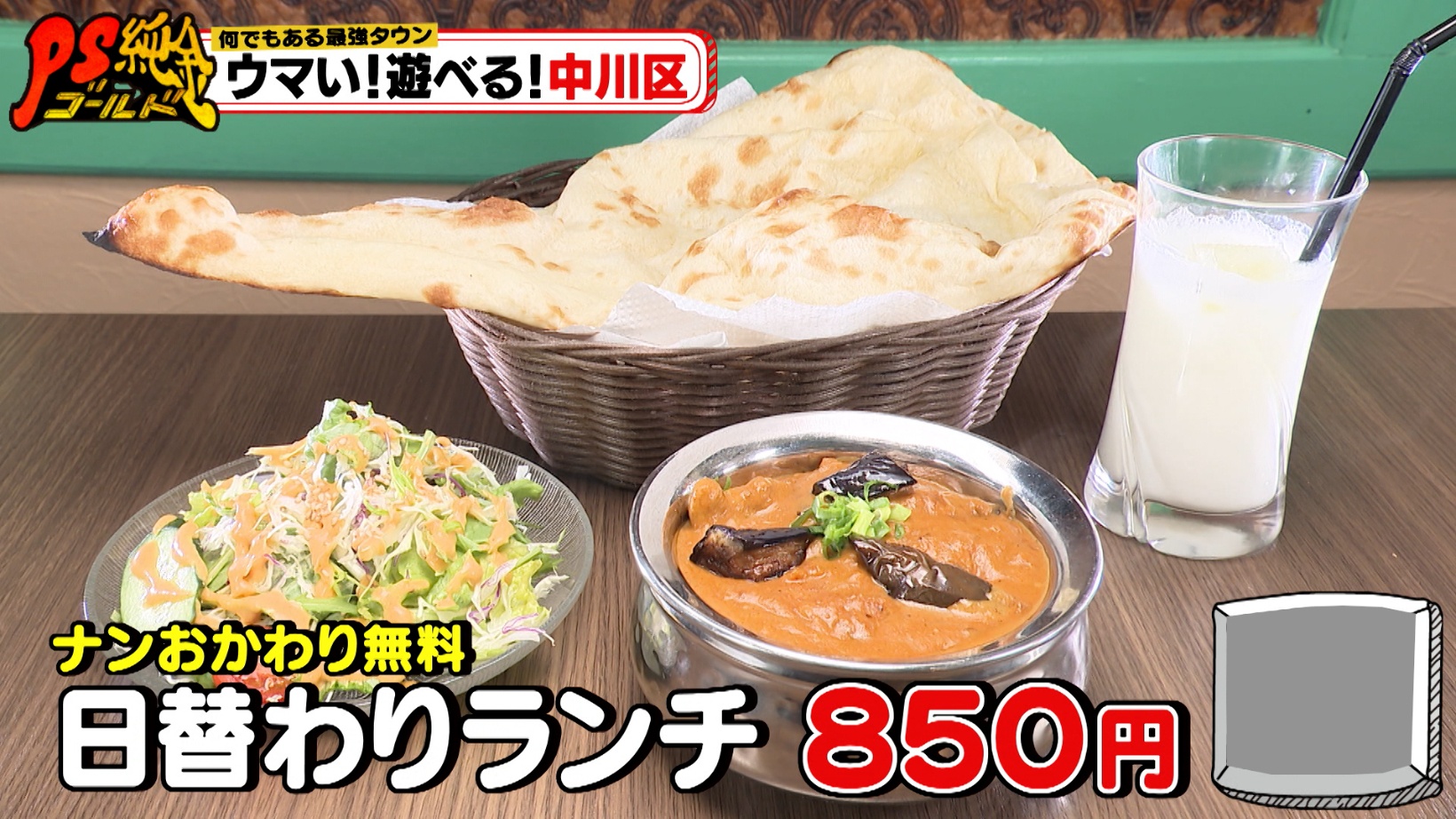 「日替わりランチ」は850円。石窯で焼いたナンは、チーズやガーリック、チョコなど8種類の味を楽しめます。