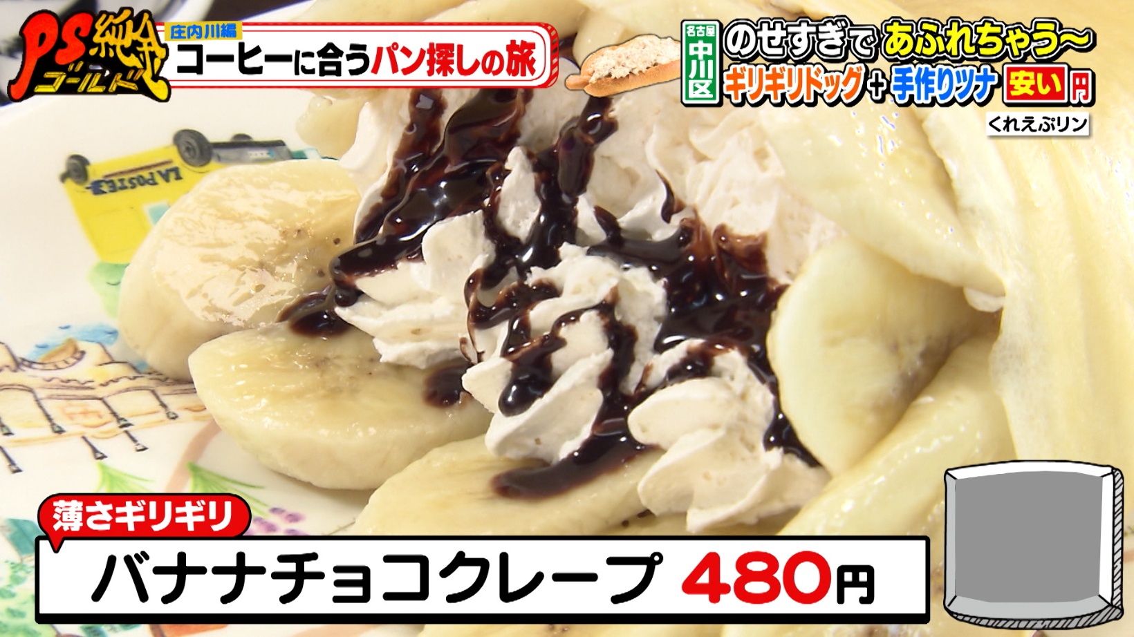 クレープもギリギリを意識しているそうで、「バナナチョコクレープ(480円)」はクレープの生地を極限まで薄くし、中のホイップクリームやバナナも生地から溢れるギリギリまで入れられています。