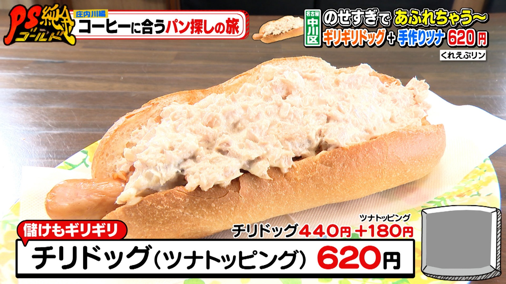 そして、こちらのお店の限界ギリギリメニューが、「チリドッグ(440円)」にプラス180円でツナをトッピングした「チリドッグ(ツナトッピング)620円」です。