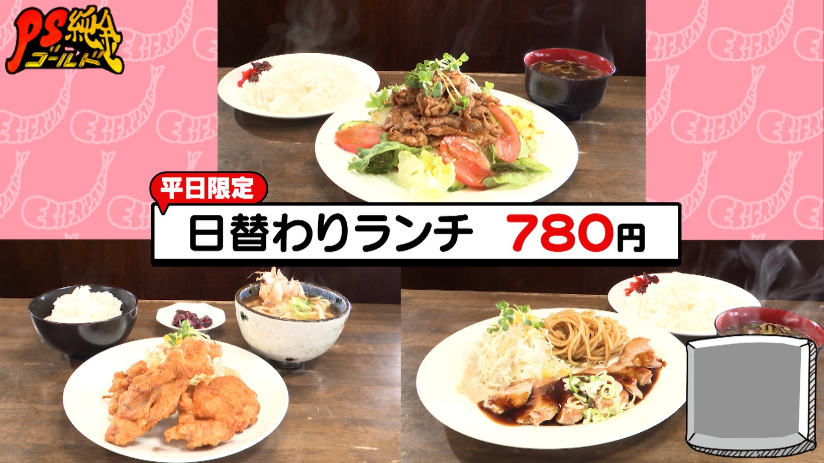 「日替わりランチ(平日限定)」もおすすめだそうで、「スタミナサラダ」や「若鶏の唐揚げとかけうどん」などが楽しめます。こちらの値段はなんと780円!その値段にスタジオからは歓声が上がります。