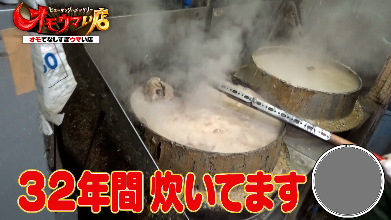店主が「命釜」と呼ぶ釜には、32年間継ぎ足しで炊き続けているスープが!豚の頭のみを使い、古い骨と新しい骨を混ぜて濃厚な豚骨スープを生み出しています。