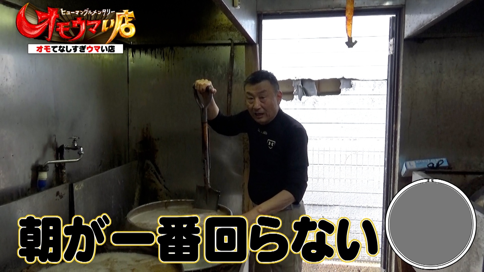 毎朝、店主が「命釜」を混ぜます。朝は重い部分が下に沈んでいるため、特に重労働なのだとか。重たい骨が混ざったスープを回す店主の様子に、スタジオから「すごいな」と感心の声が上がります。
