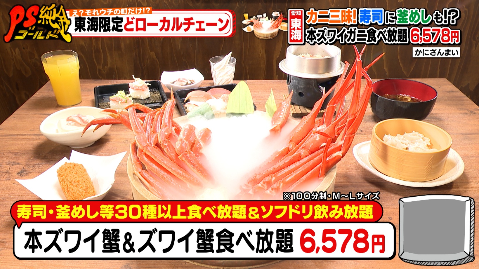 本ズワイガニとズワイガニが食べ放題の『かにざんまい』は、愛知県内に3店舗を構えるローカルチェーンです。