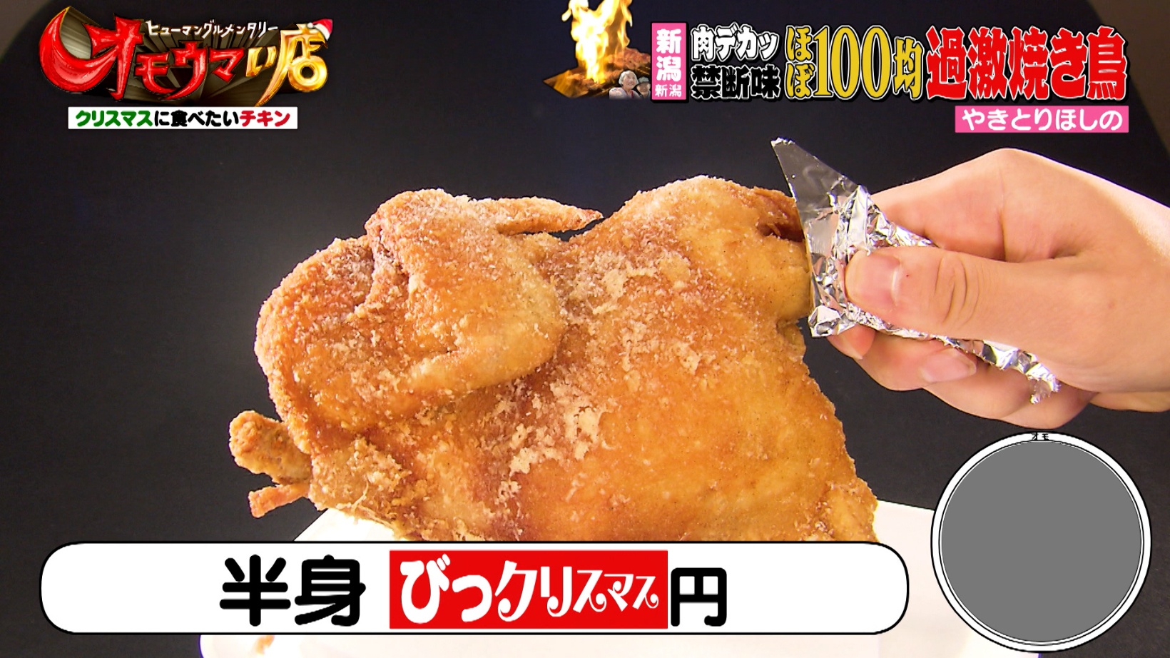 クリスマスに1日200本以上売れるという骨付きチキンの「半身(700円)」は、食べ応えのあるサイズ。「ほら!このデカさだ!どこにも負けねぇんだよ」と、店主の負けず嫌いも健在です。