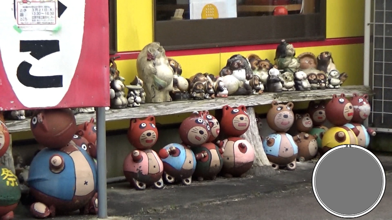 お店の周りにはずらりとたぬきの置物が。店内のいたるところにもたぬきグッズが飾られており、スタジオから「たぬきだらけ!」と声が上がります。