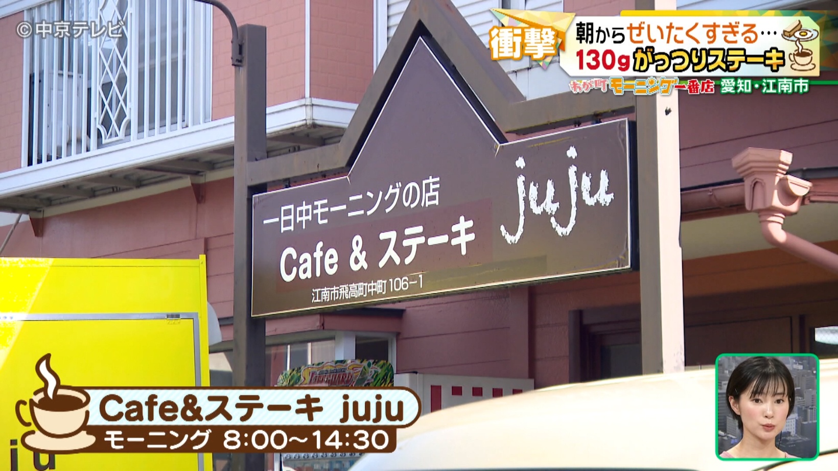 「Cafe&ステーキ juju」は、1日中モーニングを提供しているカフェです。こちらでは朝から衝撃の豪華メニューを味わえるよう。