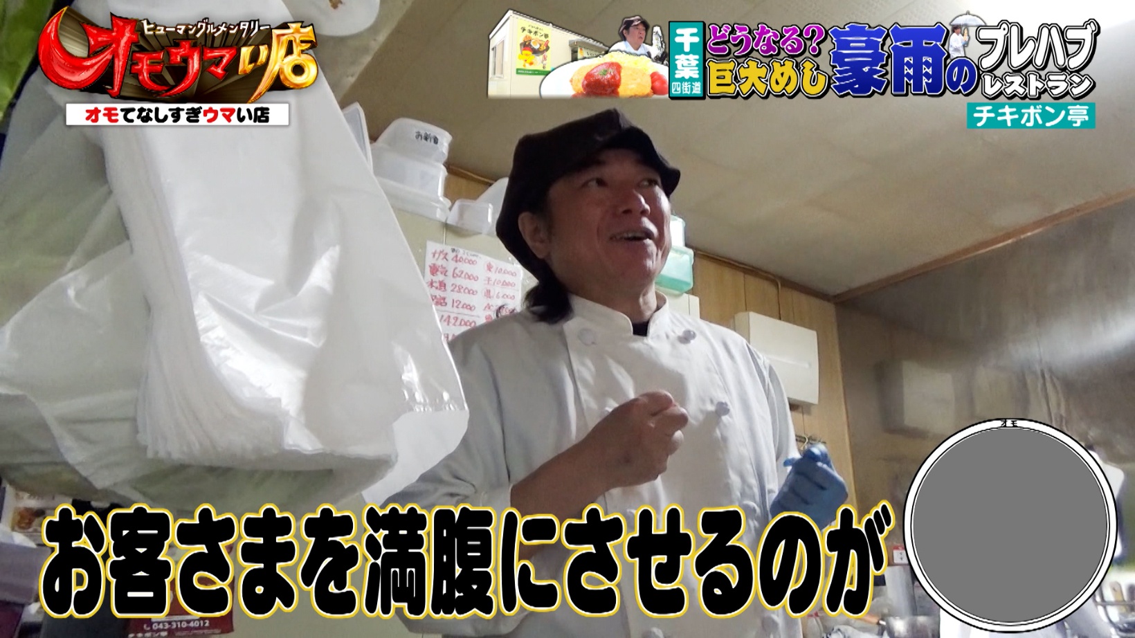 千葉県四街道市にある『レストラン チキボン亭』は、2棟のプレハブで営むレストランです。厨房でデカ盛り料理が盛り付けられる様子に、ヒロミさんは「プレハブで出す量じゃない」と笑いを誘います。