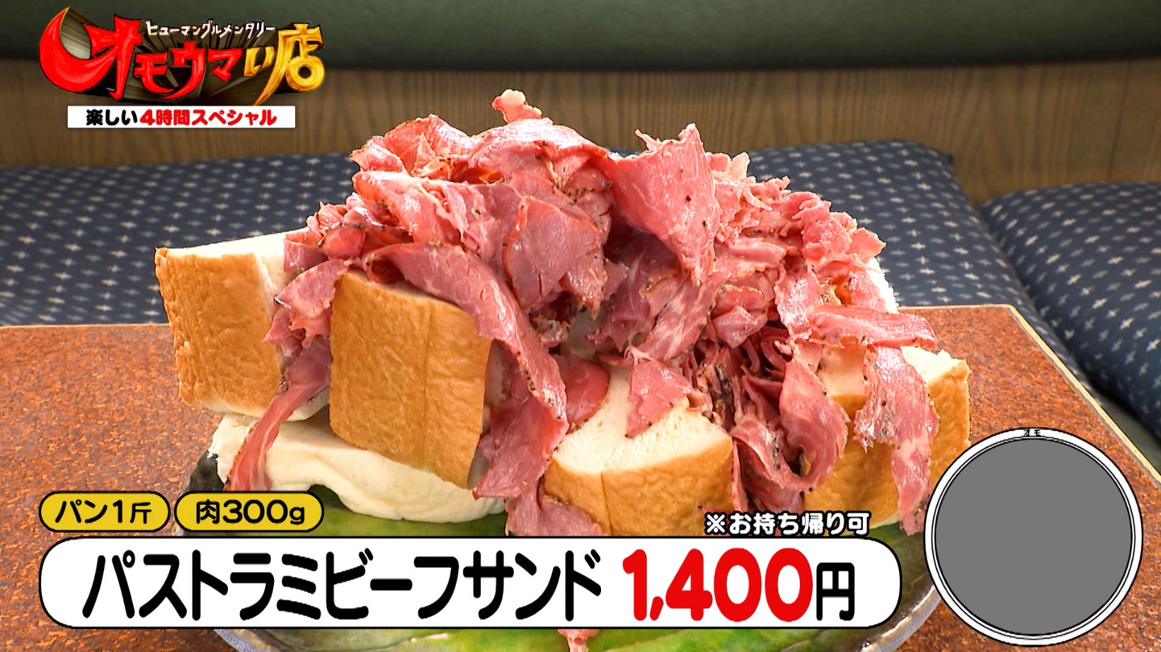 銀座の歌舞伎座近くにある『喫茶アメリカン』。名物メニューは、食パン1斤にビーフ300gをサンドした「パストラミビーフサンド(1,400円)」です。インパクト抜群の見た目にスタジオメンバーは「デカイ!」と大盛り上がり!