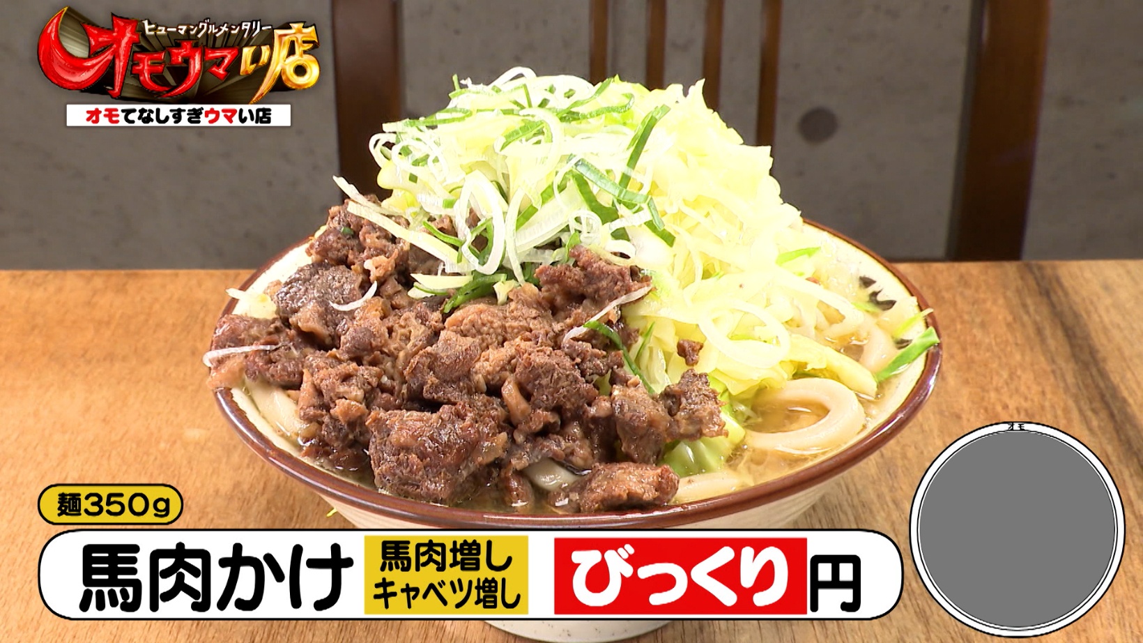 また、「もっこり」という掛け声とともに提供される麺1kgの「馬肉かけ(もっこり盛・1,300円)」も人気です。さらに、麺1.2kgもある「もっこり越え盛」に替え玉200gを3つ追加注文し、合計1.8kgの麺を完食するお客さんの姿も!お客さんの食べっぷりに、驚きを隠せないスタジオメンバーなのでした。