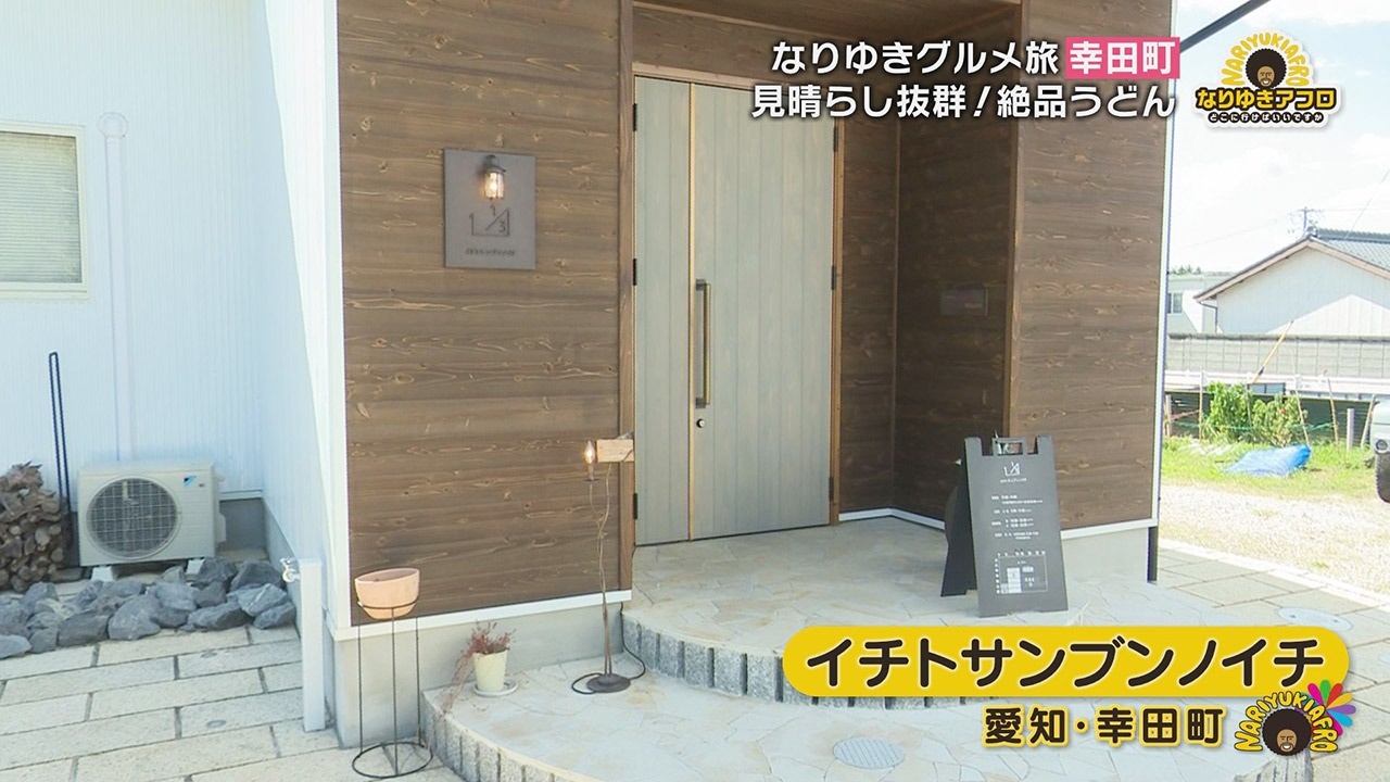 ご主人に幸田町のおいしいものを聞いたところ教えてくれたのは、「イチトサンブンノイチという店のうどん」。しかも「店内から外を見てほしい」と、どうも佇まいも素敵な店のよう。変わった名前でオシャレ感もあるうどん店に心躍らせ向かう副島くん。