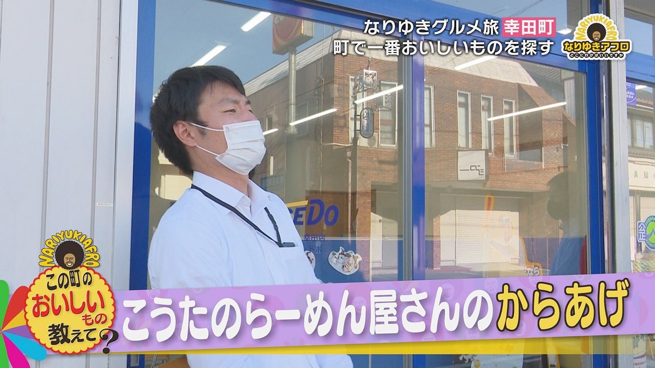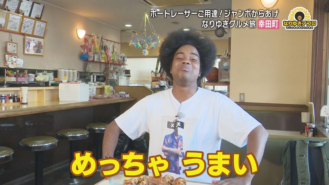 金曜日の人気コーナー、アフロヘアーがトレードマークの副島淳くんがリポートする『なりゆきアフロ』は、東海地方の125市町村を巡り、そこで出会った人に「町のおいしいもの」を聞き、その場所へ行って味わう“なりゆきグルメ旅”。