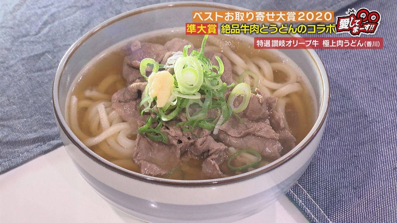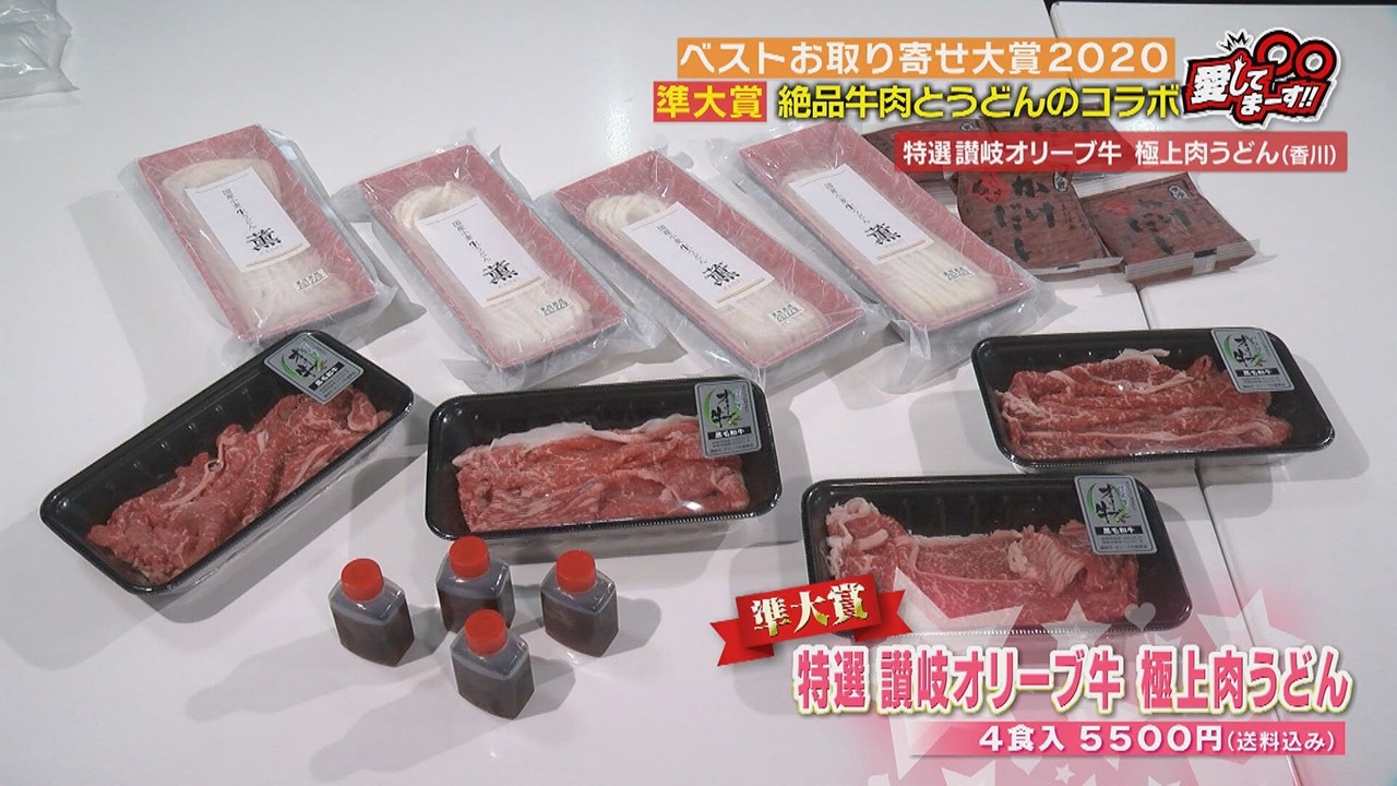 続いて第2位(準大賞)は、香川県の讃岐うどんメーカー【亀城庵】の『特選讃岐オリーブ牛 極上肉うどん』(4食入り5500円*送料込み)。