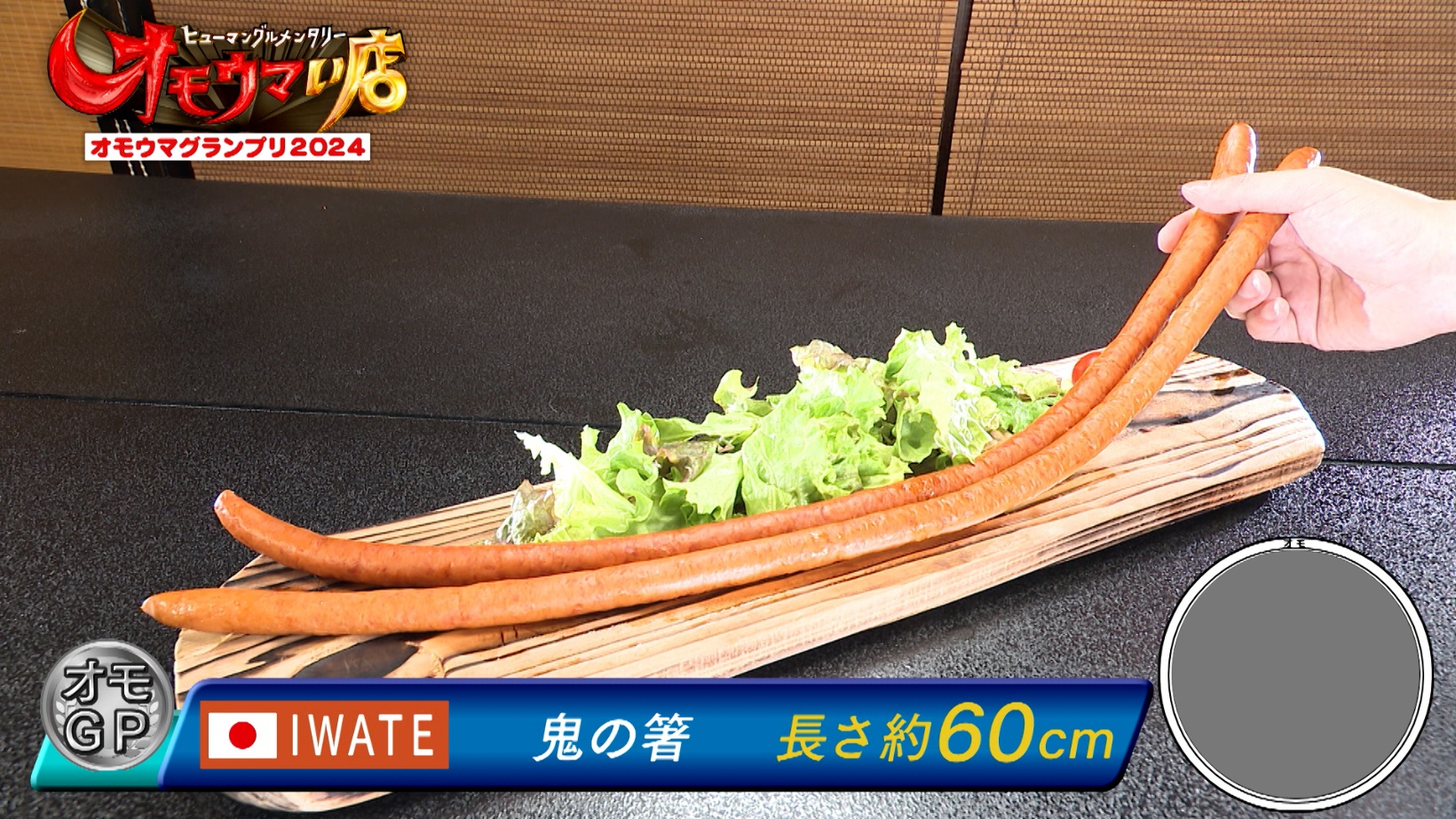 銀メダルに輝いたのは、長さ約60cmのソーセージ「鬼の箸(1,980円)」。注文したお客さんは、楽しそうにかぶりついている様子でした。