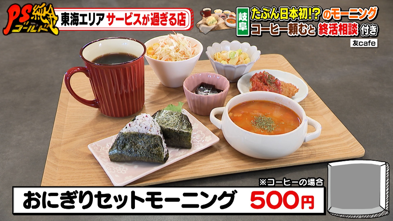 友引の日だけ営業するこちらでは、「タマゴッツォセットモーニング」や「おにぎりセットモーニング」がコーヒーの場合は500円というリーズナブルな価格で提供されています。