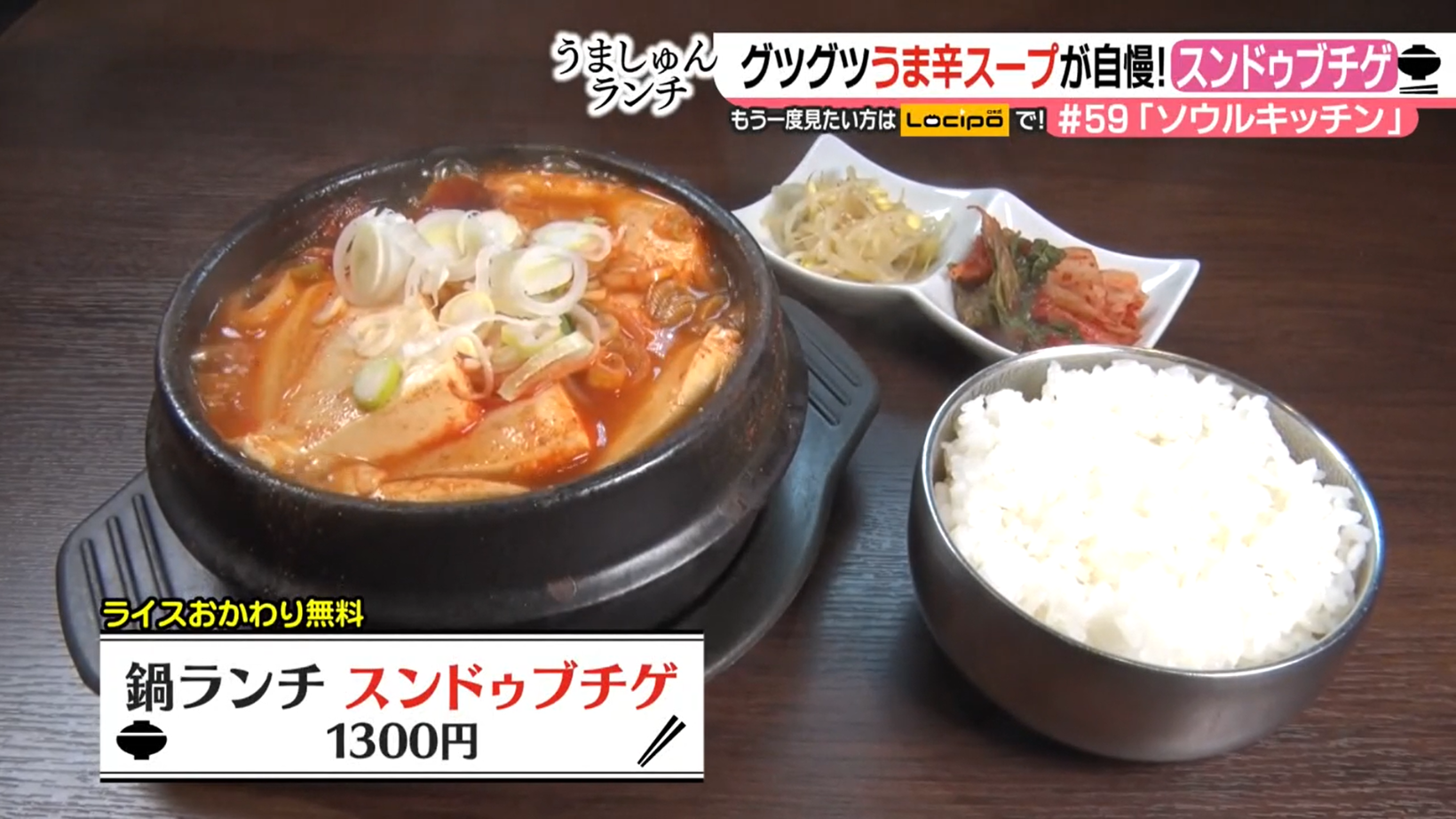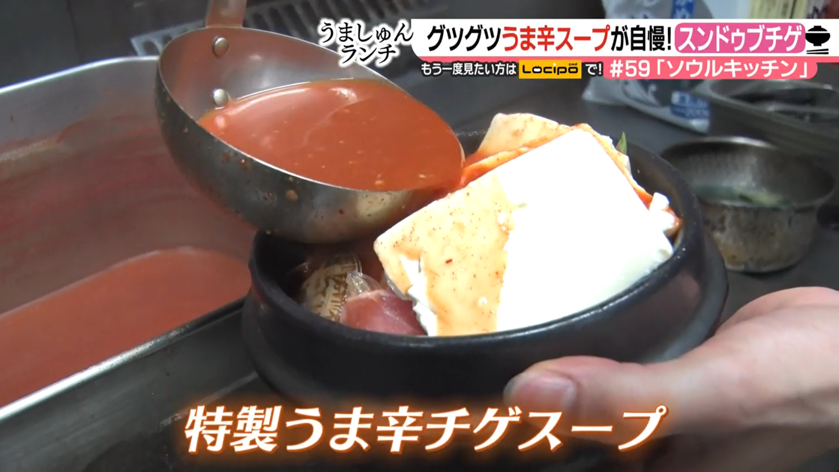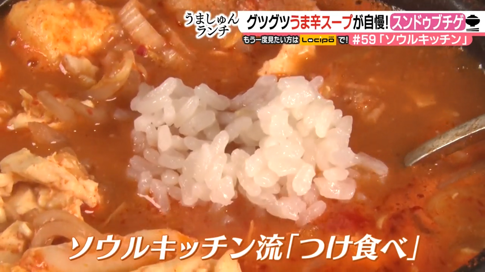 旨味と辛さが際立つスープが、豆腐との相性抜群のスンドゥブチゲ。ライスはスープにつけて食べる“つけ食べ”で楽しむのがソウルキッチン流。濱田アナウンサー曰く、「ライスと一緒に食べると、ピリ辛ぐあいが絶妙にちょうどよくなる」という“つけ食べ”。