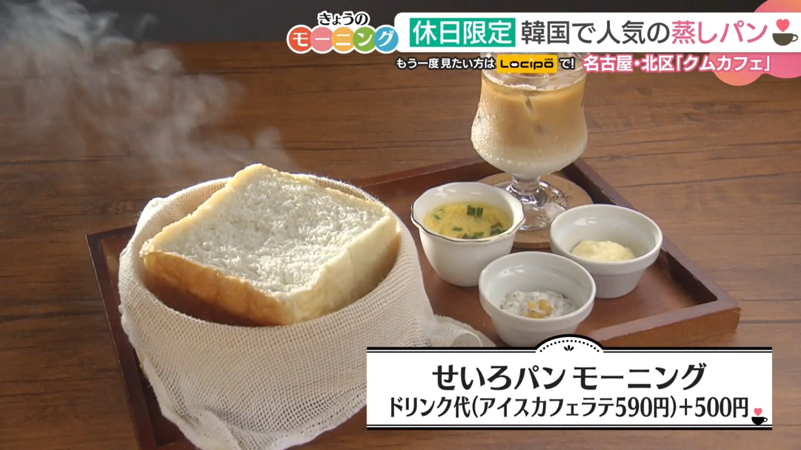 特製ディップは、はちみつバター、あんホイップ、レモンアールグレイクリームチーズ、ガーリックめんたいバターの4種類から2種類選ぶことが可能。さらに韓国風茶わん蒸し「ケランチム」もセットになっています。『クムカフェ』も登場したメ~テレ「モーニングにメ~ロメロ!」シリーズでは東海3県のモーニング情報が満載。同シリーズの別回では各店舗のさまざまなメニューを紹介しているので、“モーニング巡り”に活用してみては。