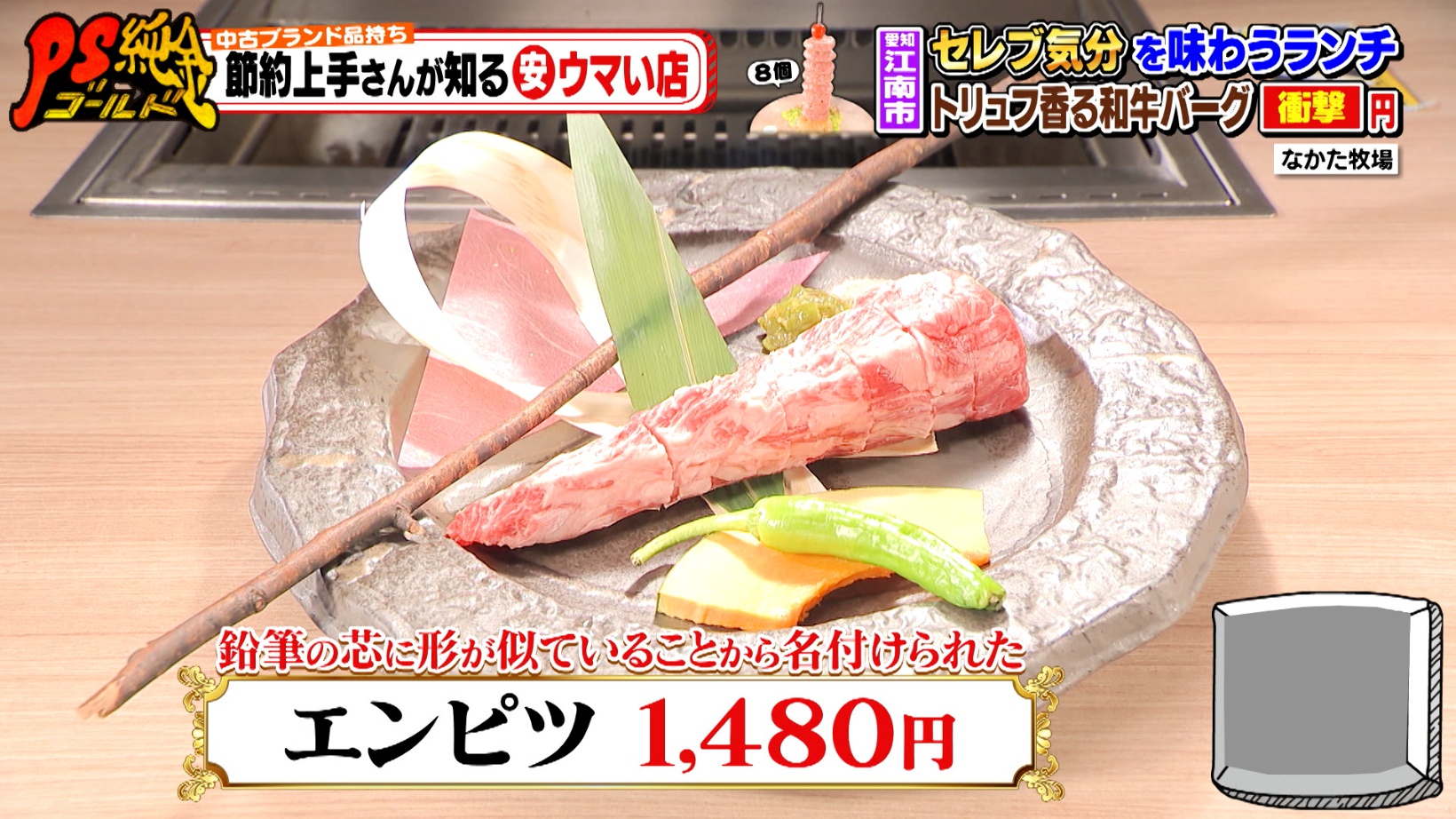 2025年1月10日の放送分は、「中古ブランド品持ち 節約上手さんが知る安ウマい店」特集。中古のブランド品を持つ節約上手さんは、上質な料理もお値打ちに食べているのでは!?そんなの仮説のもと、東海エリアのリユースショップなどで出会った節約上手さんたちに、安くてウマい店を教えてもらいました。
