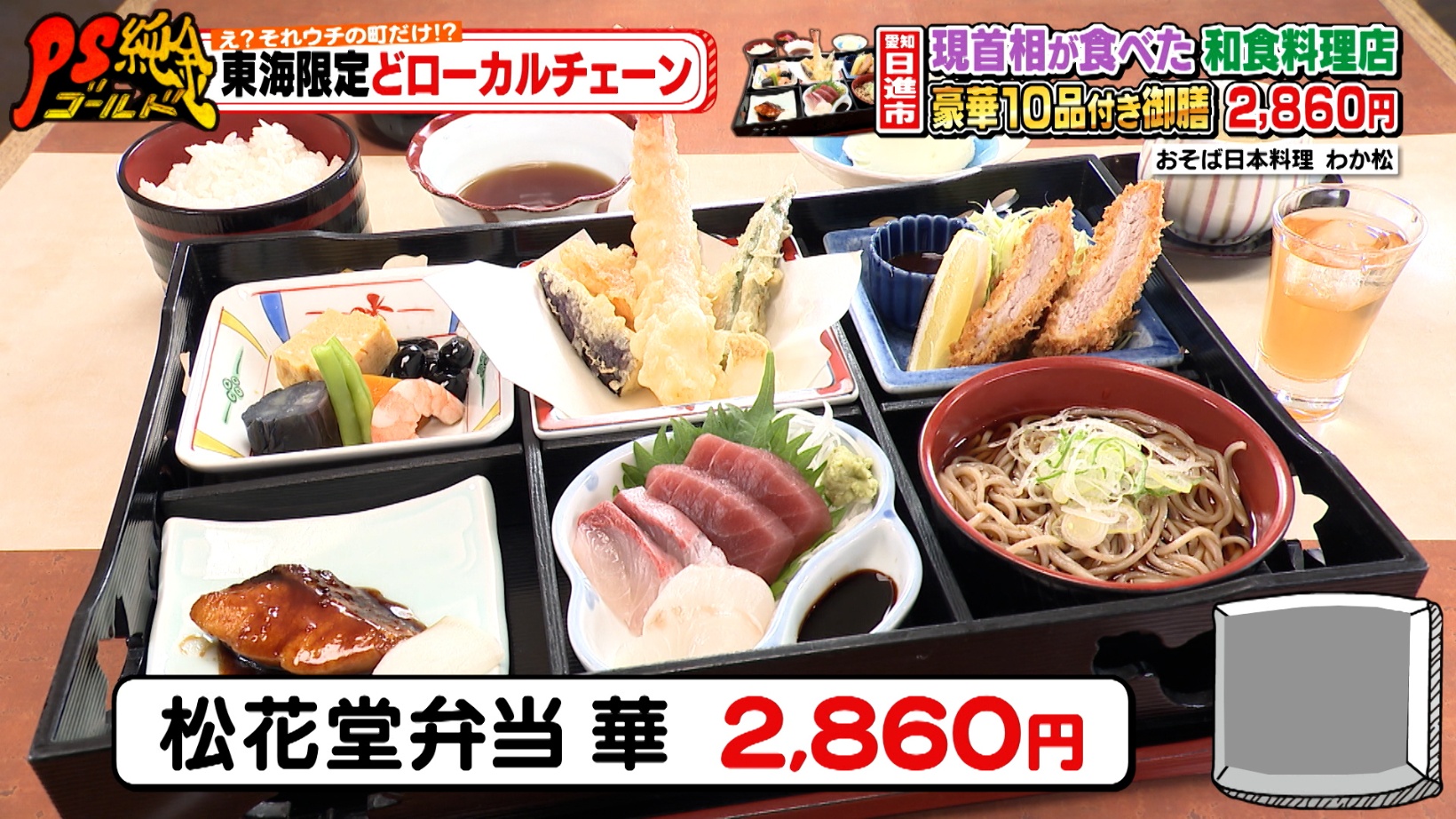 石破首相が過去に食したのは「松花堂弁当 華(2,860円)」で、刺身など豪華10品、食前酒つきです。