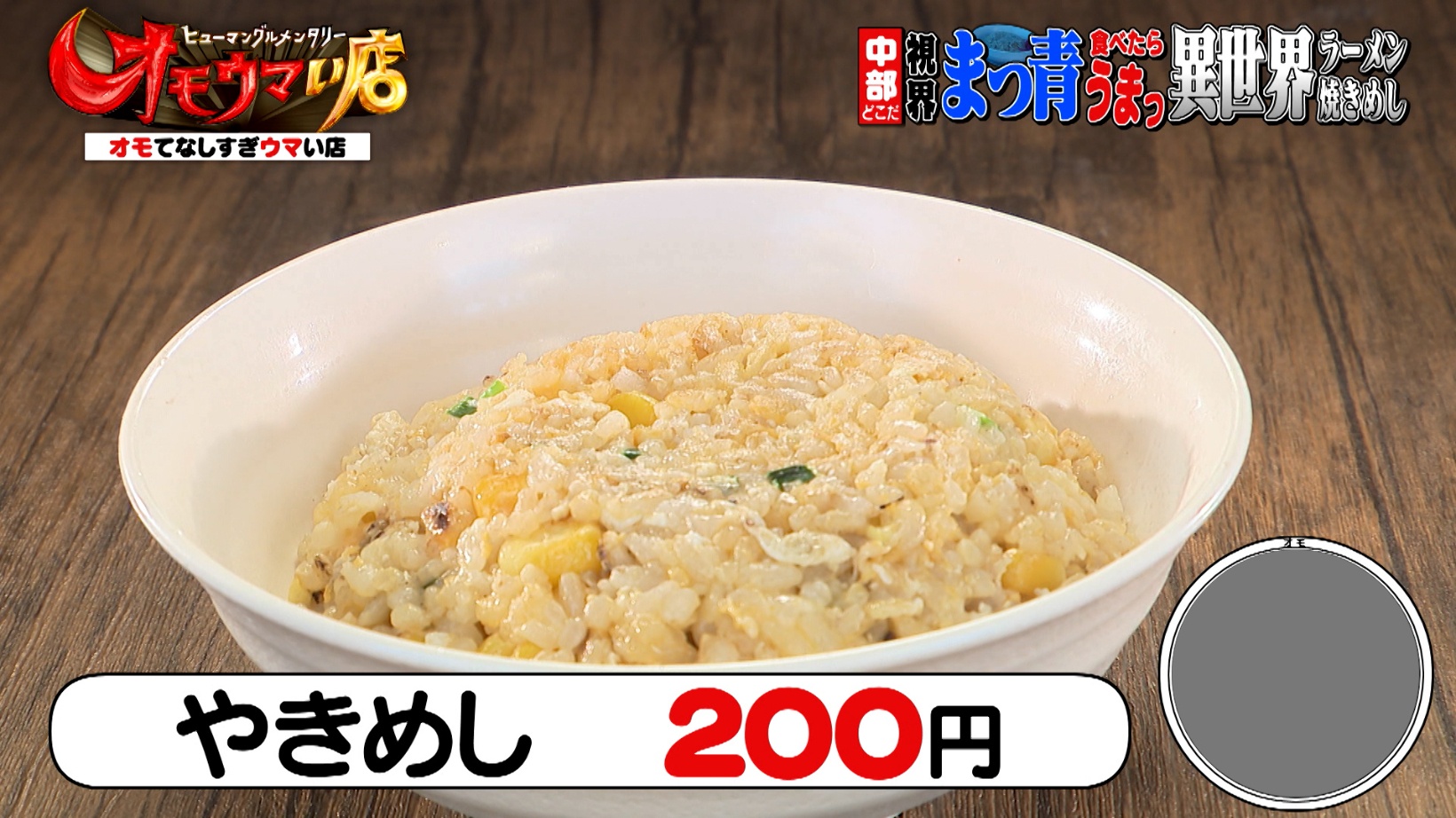 卵、コーン、ニラが入った「やきめし」は、200円という衝撃価格です。冷めてもおいしいように、しょうゆを使わず、だしを加えて仕上げているそうです。らーめんとセットで注文してもワンコインという破格の安さに、スタジオメンバーは絶句するのでした。