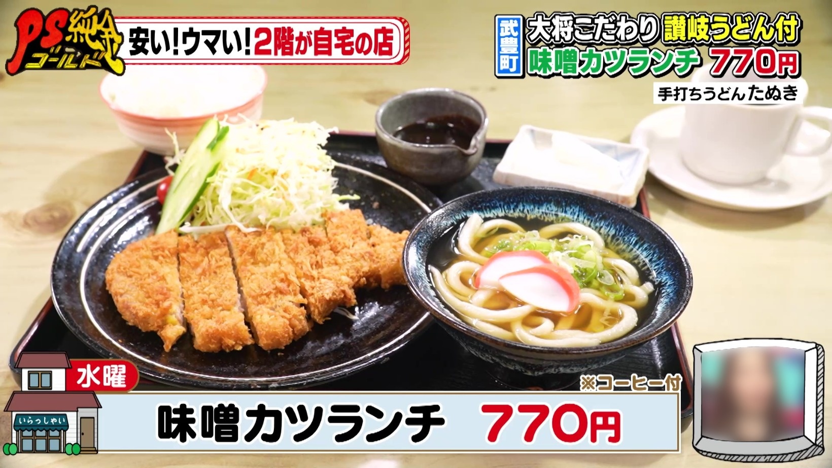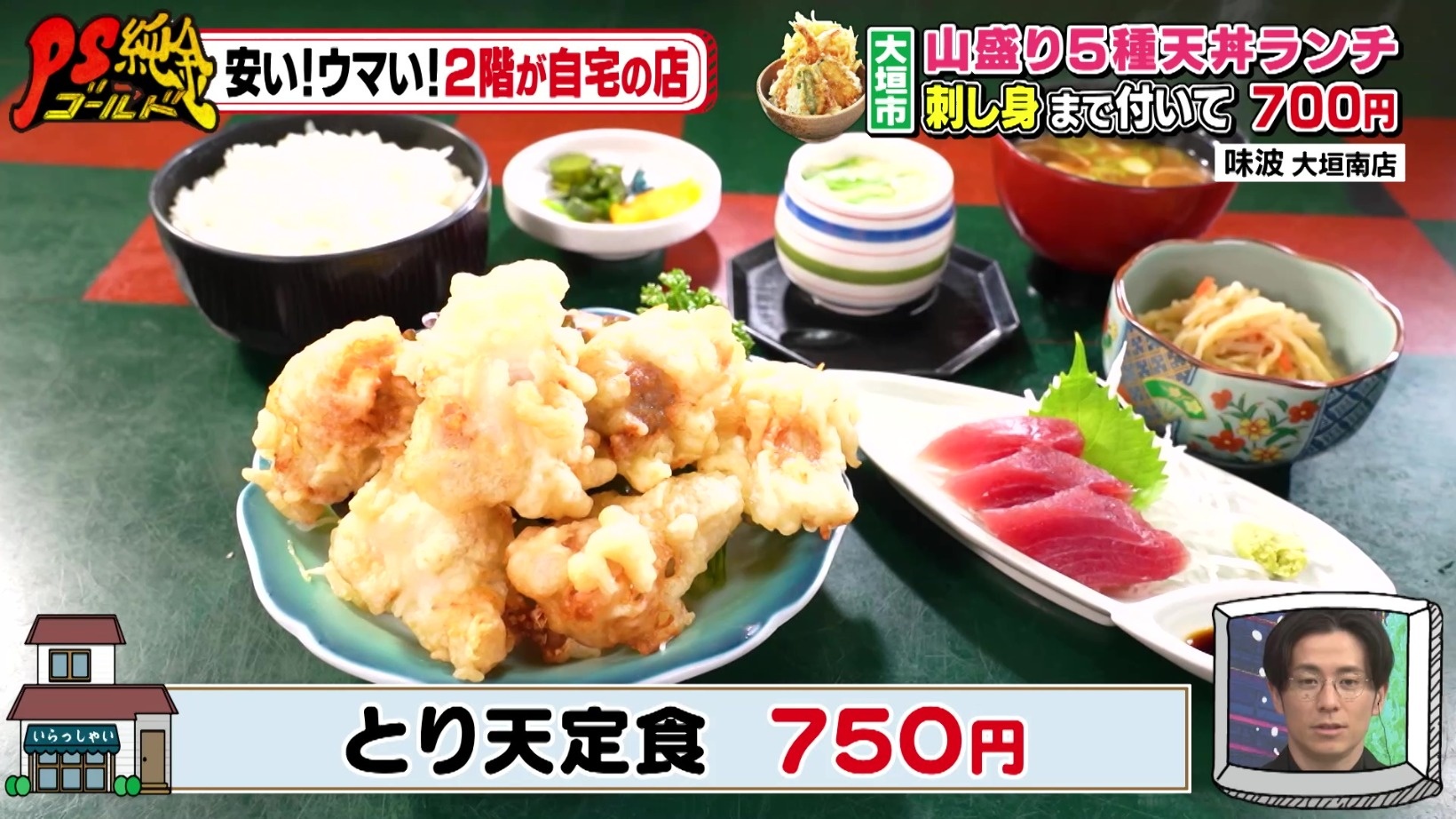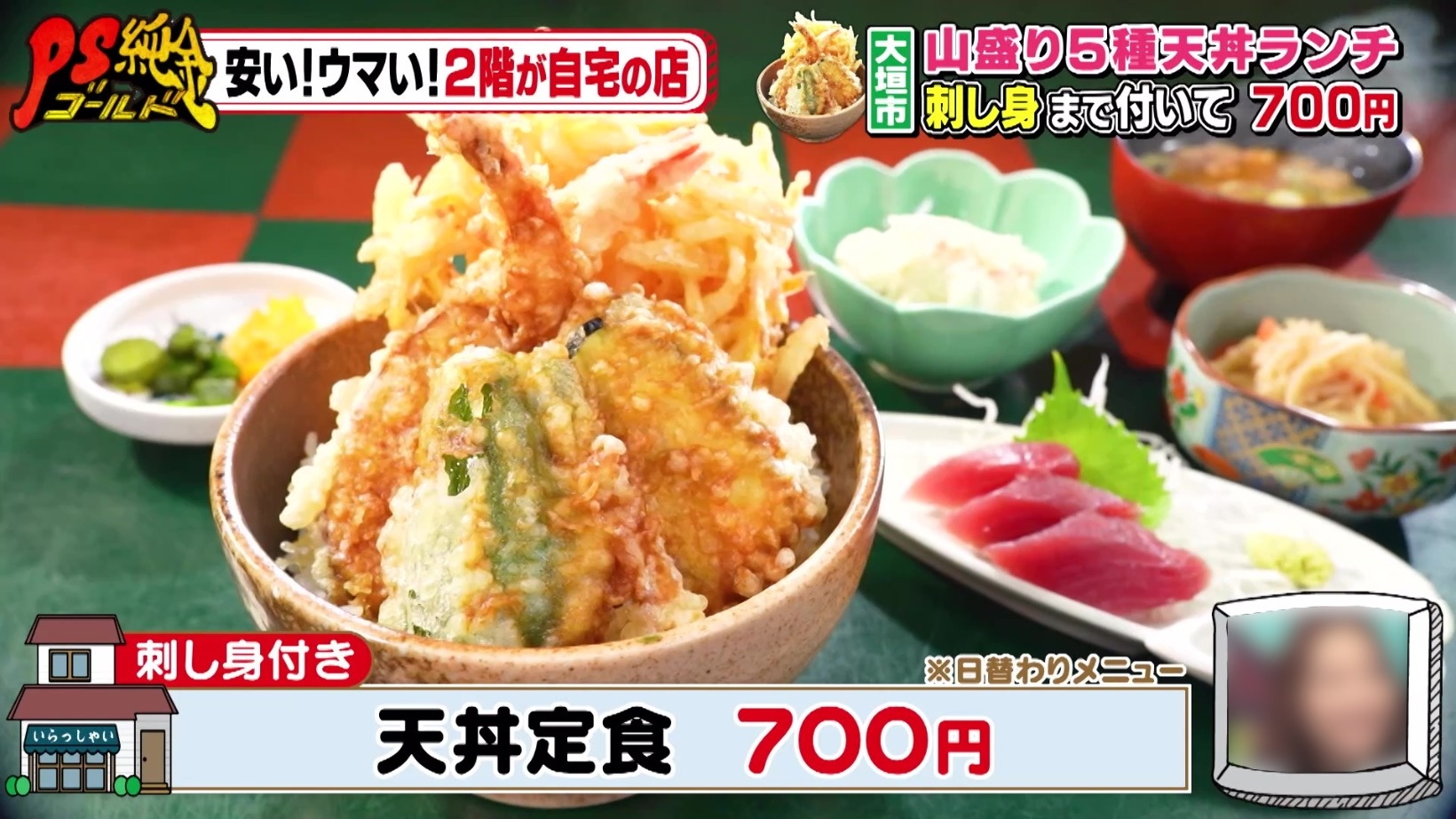 『PS純金(ゴールド)』安い!ウマい!2階が自宅の店!刺し身付き天丼定食700円&うなぎご飯付きモーニング500円