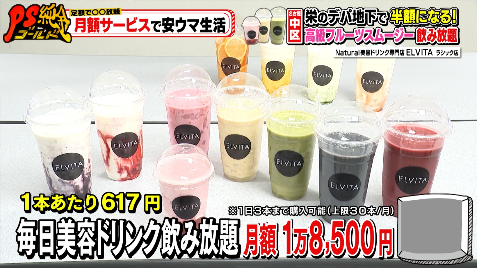 柑橘系や野菜系など約100種類以上のスムージーから選べる「毎日美容ドリンク飲み放題」は月額1万8,500円で、1日3本まで購入可能です。あまりの美味しさに、3本も完飲する高岸さんなのでした。