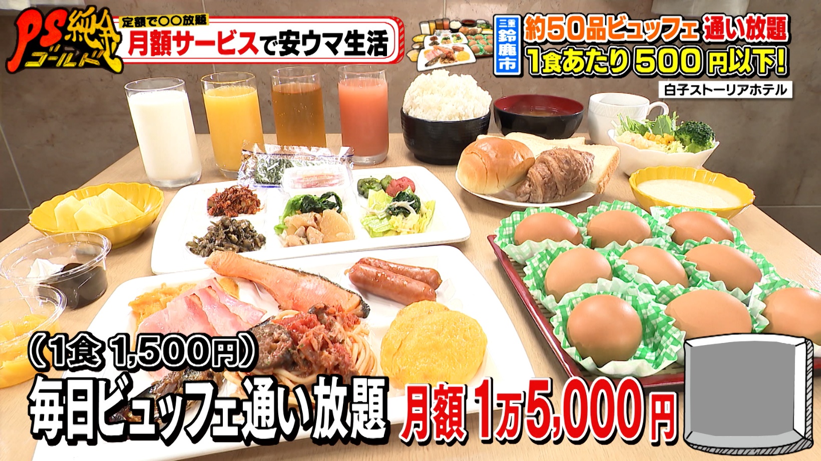 和洋メニューのバラエティ豊かな50種類以上の料理が楽しめます。「毎日ビュッフェ通い放題」の月額プランは1万5,000円。宿泊者以外も利用可能で、通常1食1,500円のところ、月額会員なら1食あたり484円と超お得!極上のお得を求め、高岸さんは約25分で見事に完食しました。