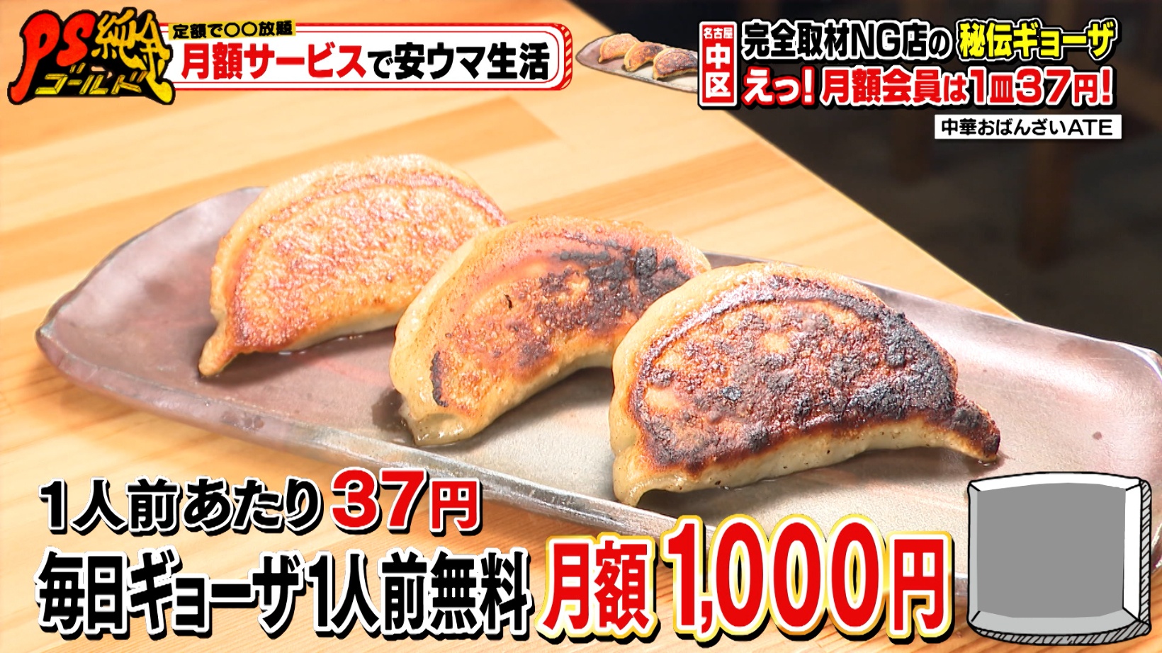 名店仕込みの秘伝あんには20種類以上の具材を使用し、極厚のもちもち皮で包まれたこだわりの一品です。月額1,000円で毎日ギョーザ1人前が食べ放題に。月額会員は1皿37円で割引率92%という驚愕のお値打ちに、スタジオ一同驚きの声を上げるのでした。