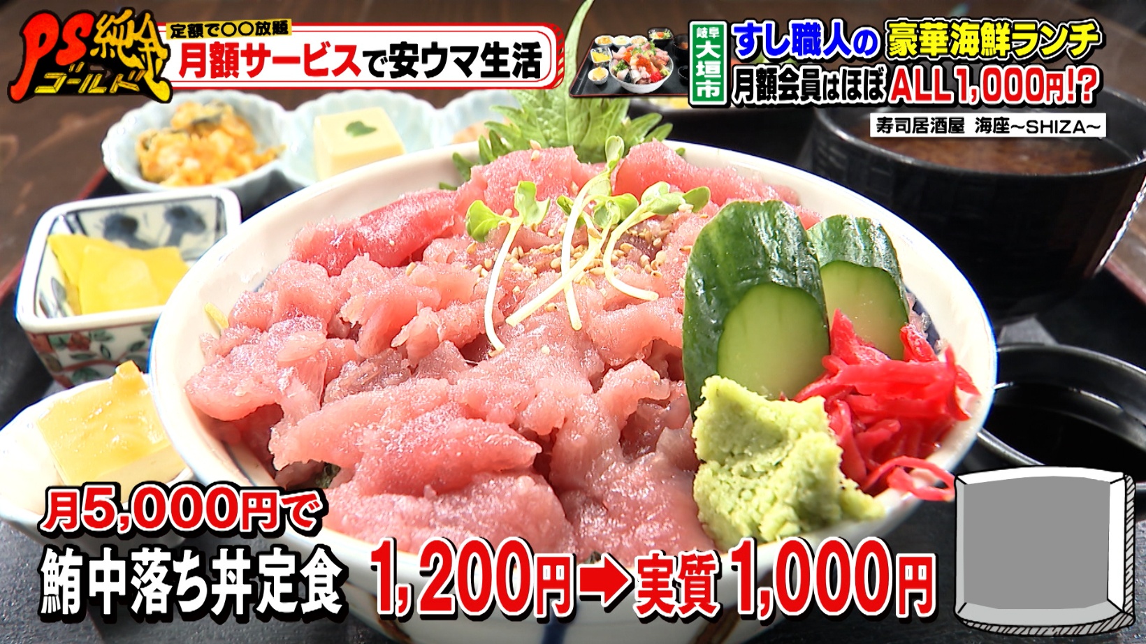 通常1,200円の「海鮮ちらし寿司定食」や「鮪中落ち丼定食」も、会員になると実質1,000円に。通常6,000円分のランチが、会員価格なら5,000円で楽しめ、16.7%もお得になります。