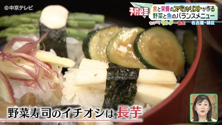 野菜寿司のイチオシは長芋です。お酢が効いたシャリに野菜本来の味わいが絶妙なバランスで押し寄せてきます。