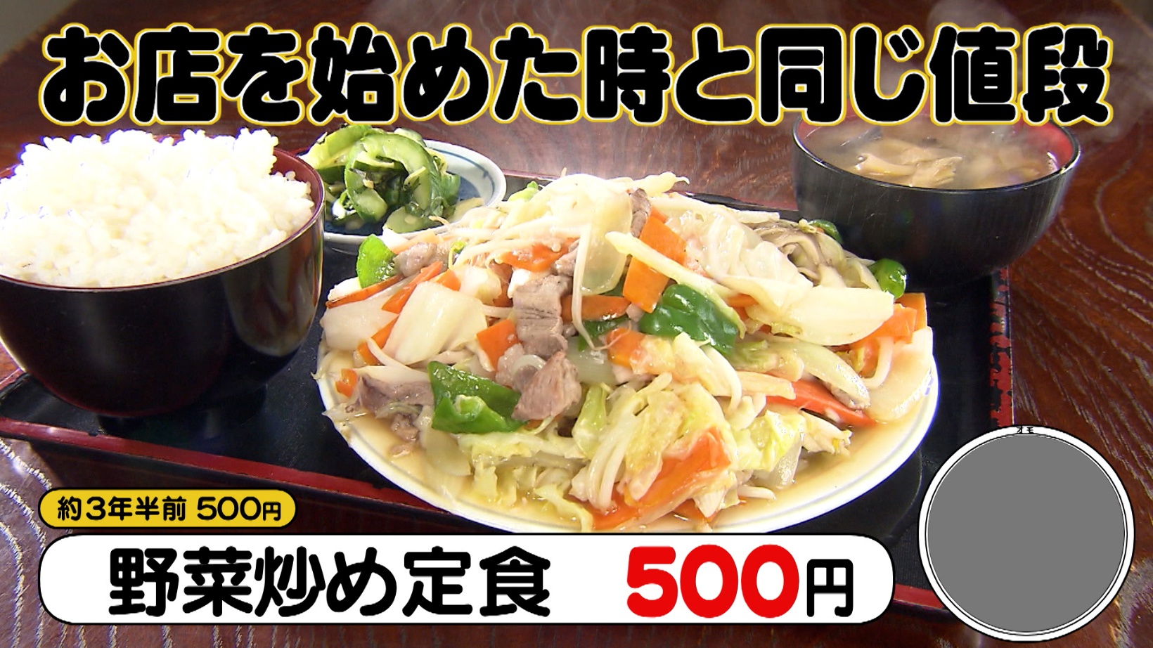 今回、3年8カ月ぶりに店を再訪。「野菜炒め定食」は500円、「ナスと肉のみそ炒め定食」は600円と、当時と変わらぬ値段で提供されていました。豪快で爆弾と呼ばれていたという店主は「お店を始めた時と同じ値段。これからも上げるつもりはありません」と話します。物価が上がっても「値段上げて儲けてもしょうがない」と笑いながら、値上げはしないと断言するのでした。