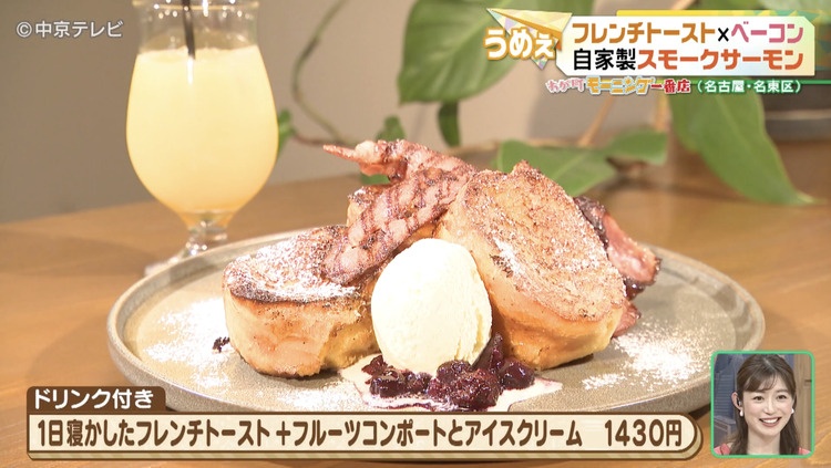 ・1日寝かしたフレンチトースト+フルーツコンポートとアイスクリーム(ドリンク付き):1,430円