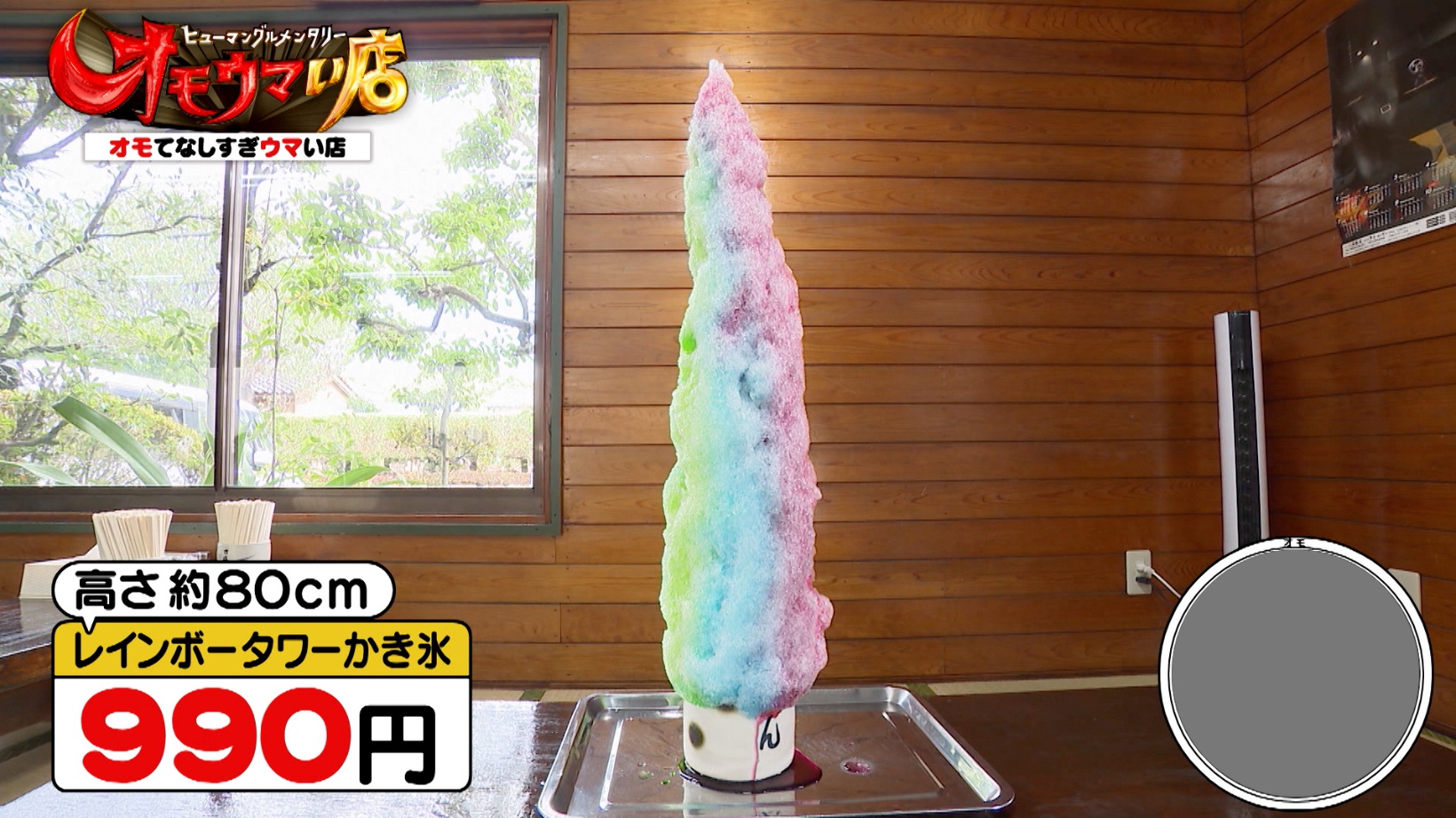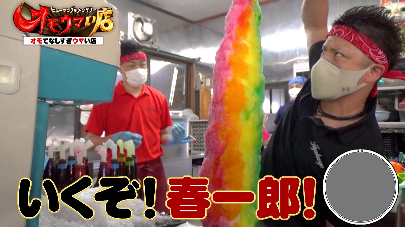 一方、春一郎さんは初めてのかき氷運びに挑戦。『百姓うどん』の夏の名物「レインボーかき氷(990円)」は、重さ約7㎏、高さ約80cmもある巨大サイズで、店主によると「(全て作って運んで)完璧になるには5年は必要」とのこと。春一郎さんは、傘をかき氷に見立てて練習を重ねます。果たして無事に運ぶことができるのか…!?