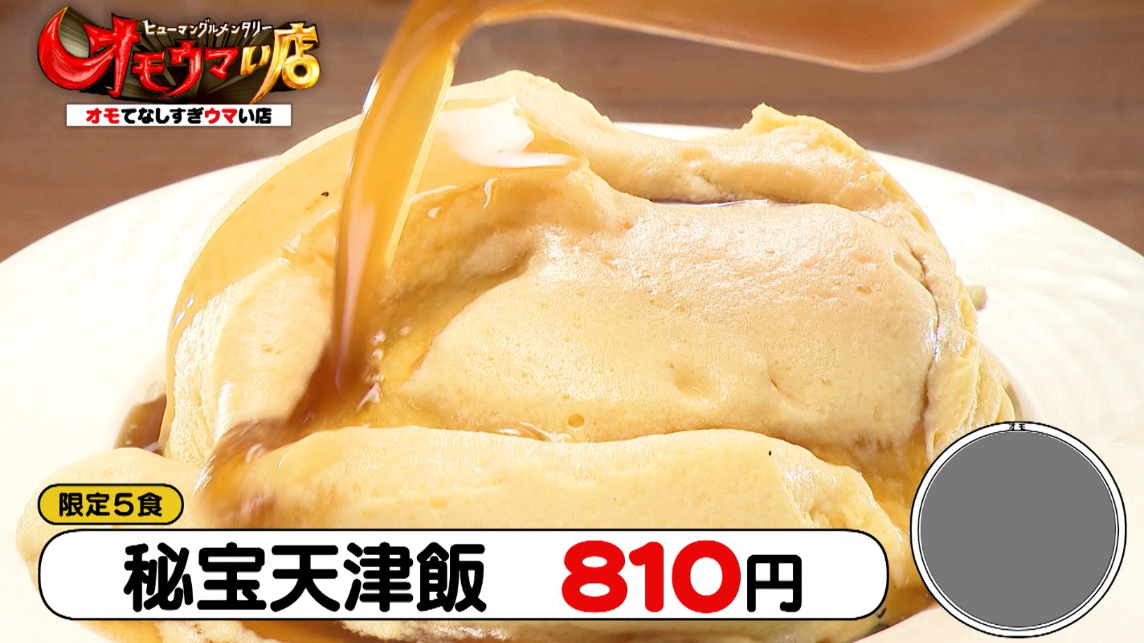 中でも注目は、限定5食の「秘宝天津飯(810円)」。卵白を混ぜてから卵黄を加え、フライパンで蒸し上げた超フワフワ卵をチャーハンの上にのせて仕上げます。しょうゆ餡をかけると、とろ~り溶け出すようなビジュアルに、スタジオから歓声が上がります。