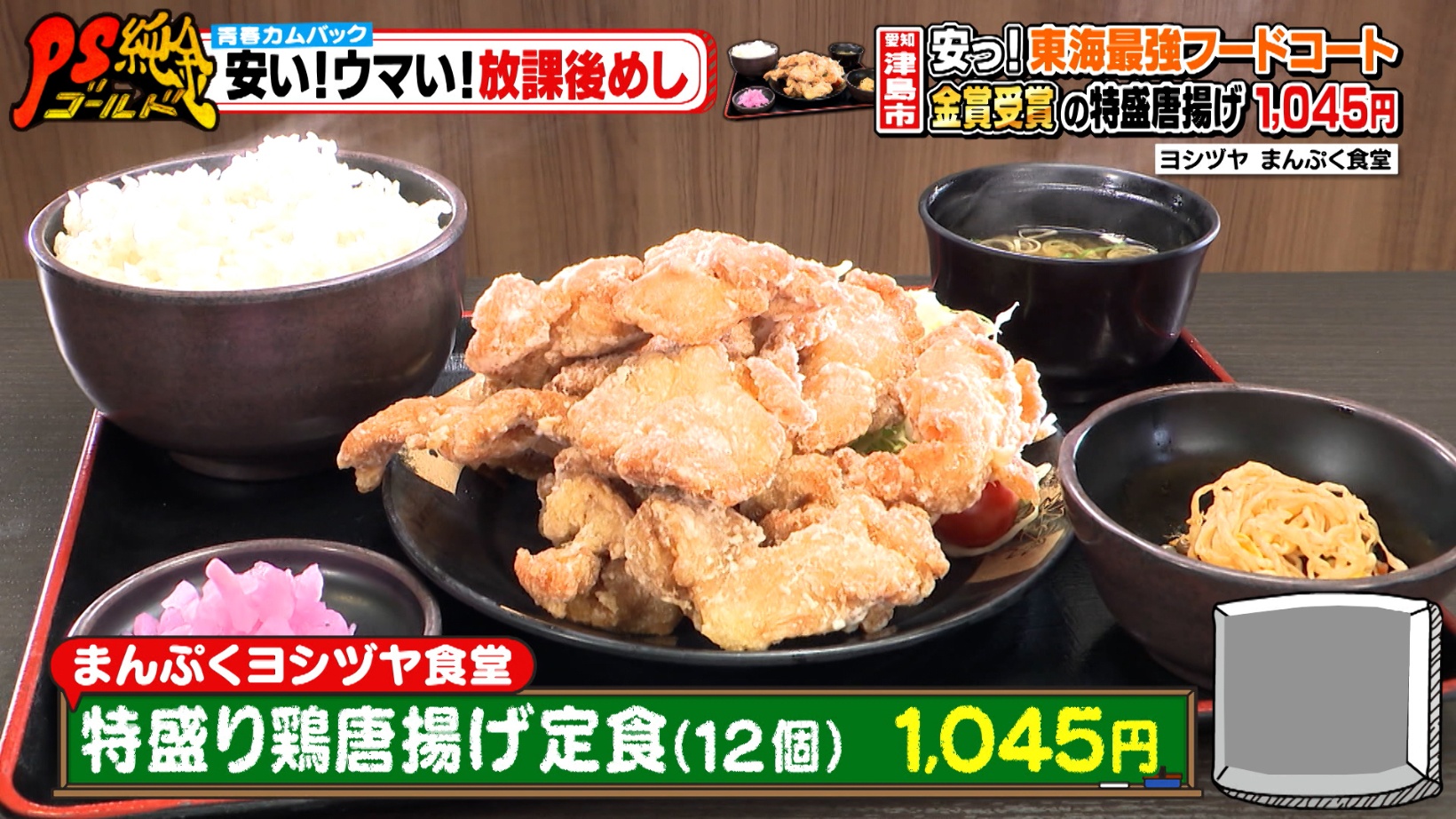 青春の味!フードコートに学生集合!金賞受賞のやわらか唐揚げが山盛り!愛知県津島市『まんぷくヨシヅヤ食堂』