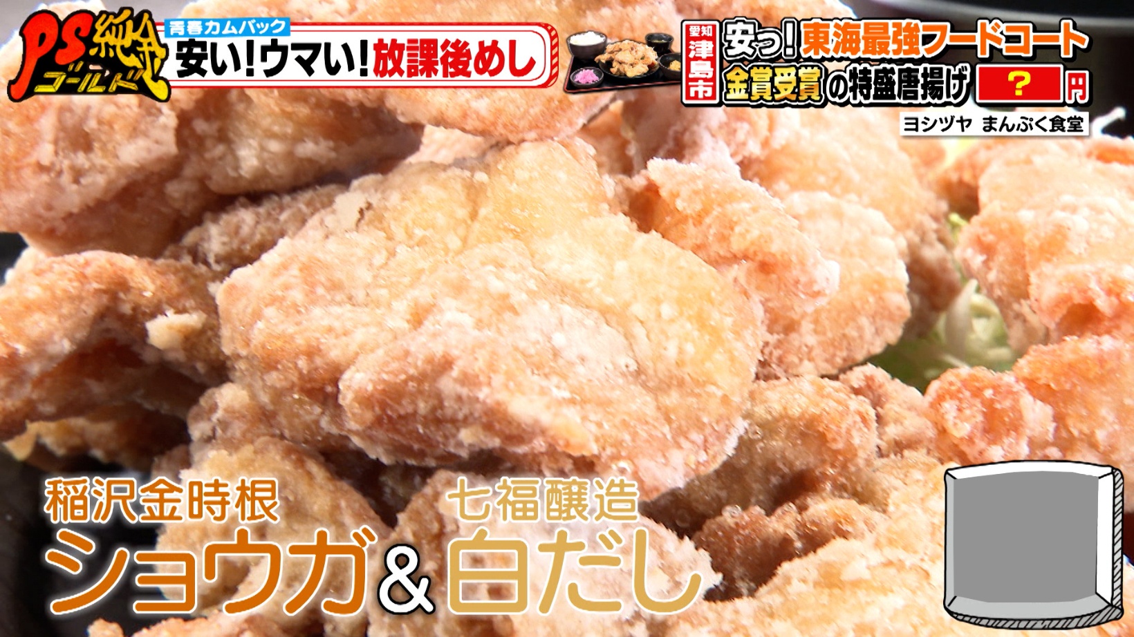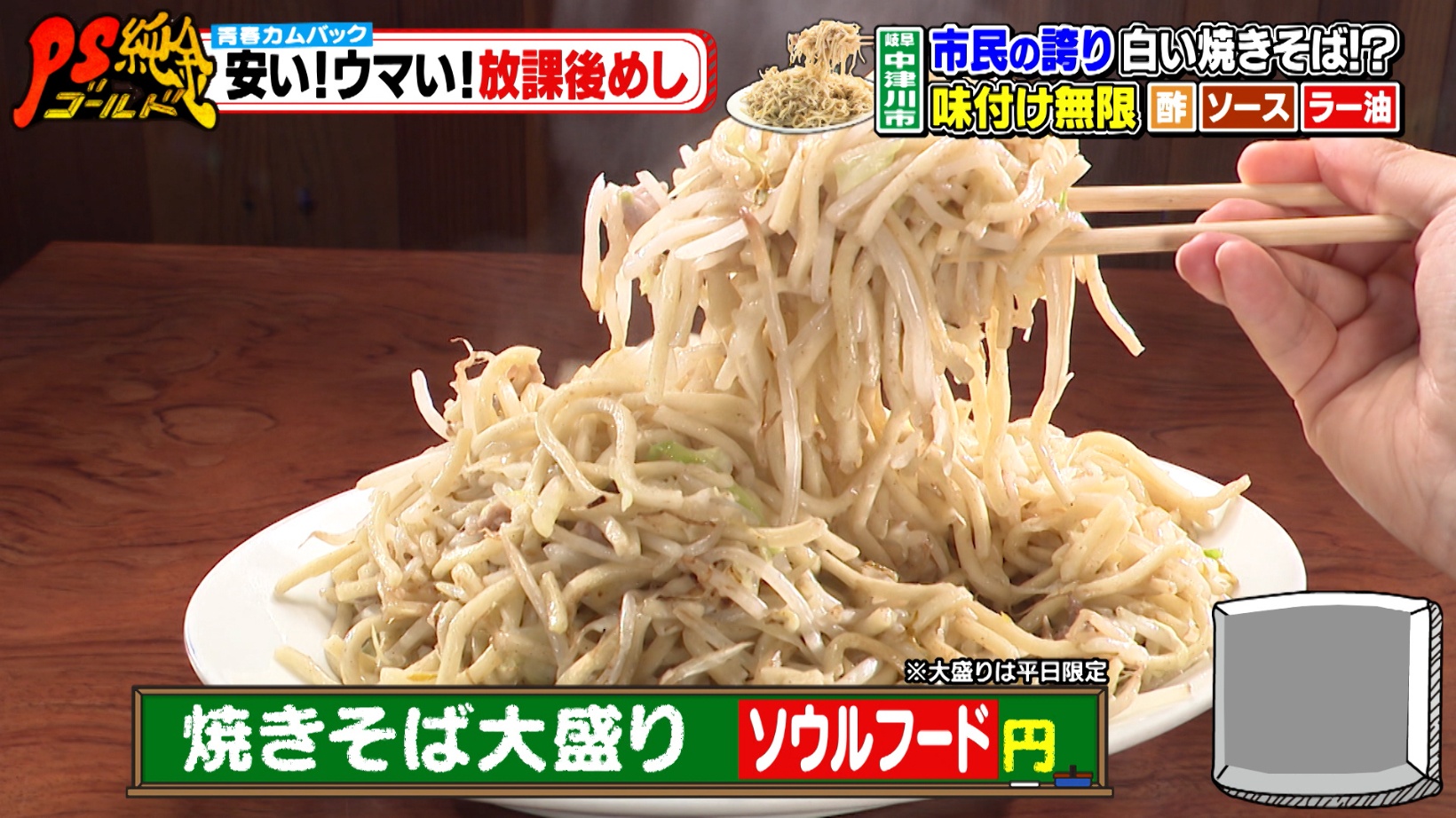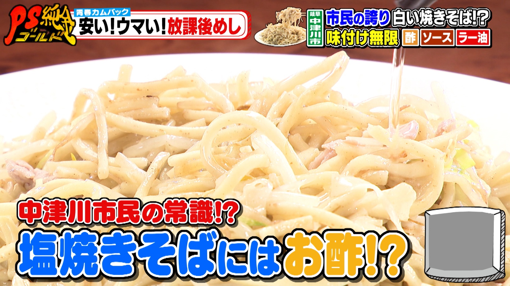 安うま放課後めし!津島市「まんぷくヨシヅヤ食堂」学生喜ぶ山盛り唐揚げ&中津川市「五十番」お酢かける!?ソウルフードのやみつき塩焼きそば『PS純金(ゴールド)』