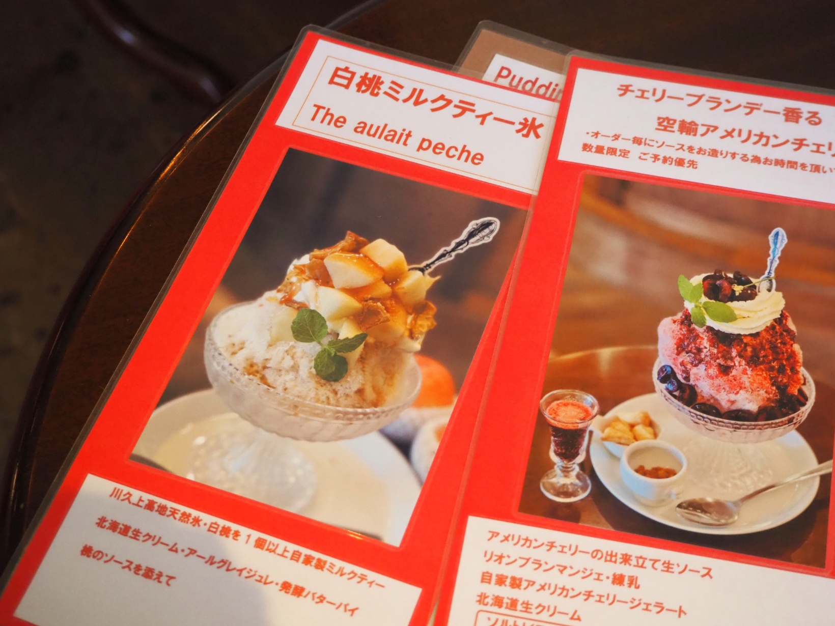 1年中、旬のフルーツを使用したパフェが味わえる『リオン菓子店』。シーズンごとに、常時3~4種類のパフェが揃います。また、9月末頃までかき氷メニューも展開。アメリカンチェリーや白桃、レモンなど多彩なフルーツを、氷と共に楽しめます。