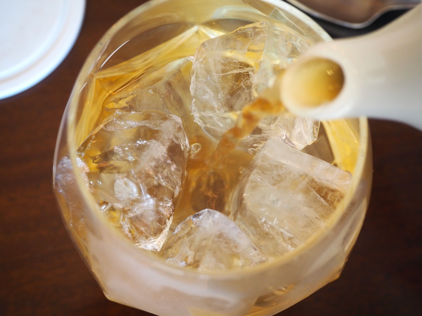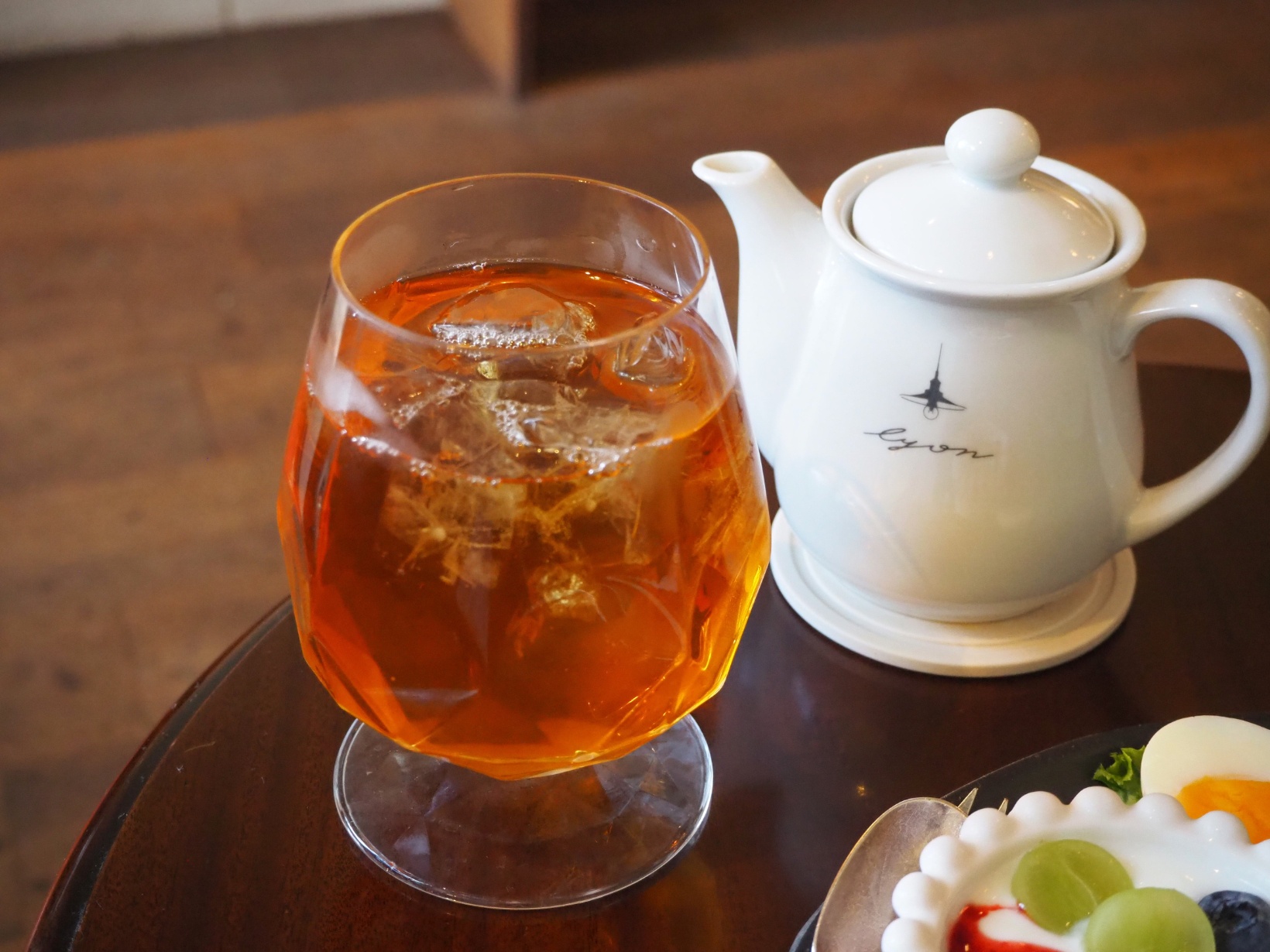 オーダーしたのは、サクランボやイチゴなどフランスを代表する4種の赤いフルーツの香りが詰まった「4 FRUITS ROUGES」。ホットティーを氷のカップに注ぐスタイルでいただきます。