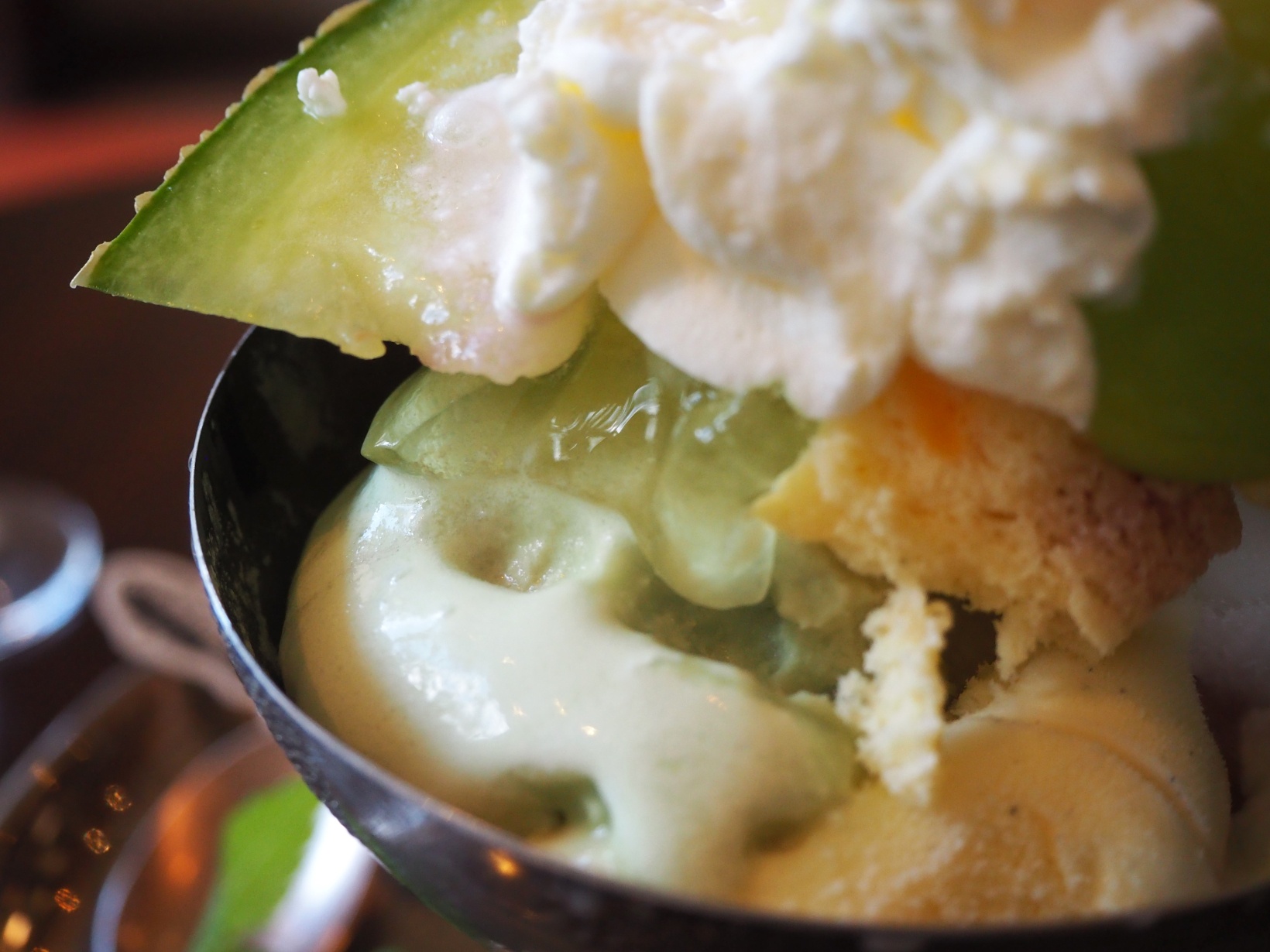 fleurs d’étéには、メロンアイス、ライチシャーベット、バニラビーンズアイスが入っていました。これらアイスやシャーベットは、すべて自家製!フレッシュなメロンのコクと香りをダイレクトに感じることができる、メロンアイスは必食です。