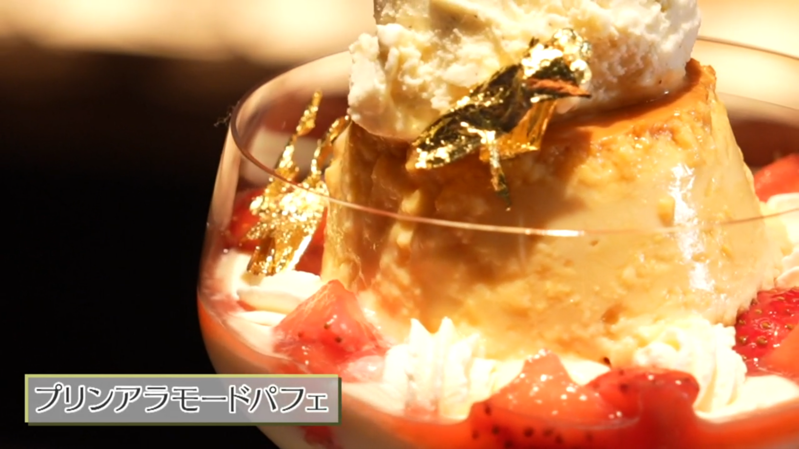 動画内では、完成したパフェの“美しさ”もしっかりフォーカス!プリンの上できらめく金箔、小花が演出するロマンティックな花畑…。眺めているだけで幸せになれる、華やかな見た目にも注目です。