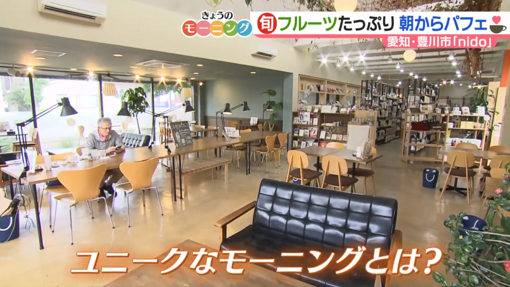 愛知県豊川市にある商業施設『アイレクステラス クラシック』内にあるカフェ『nido by Honey Bee Project』。大きな窓から太陽の光が差し込み、穏やかな雰囲気が漂います。