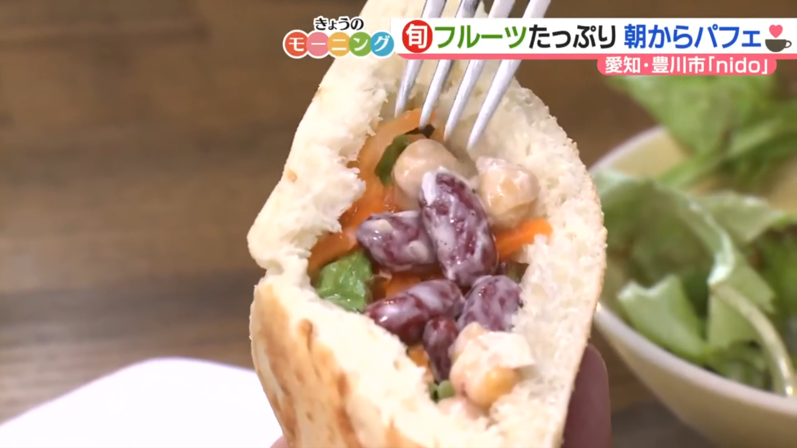 そんなカフェで味わえるのが、「パフェモーニング」(ドリンク代+500円)。フォカッチャとサラダに、なんとフルーツたっぷりのパフェがついてきます。