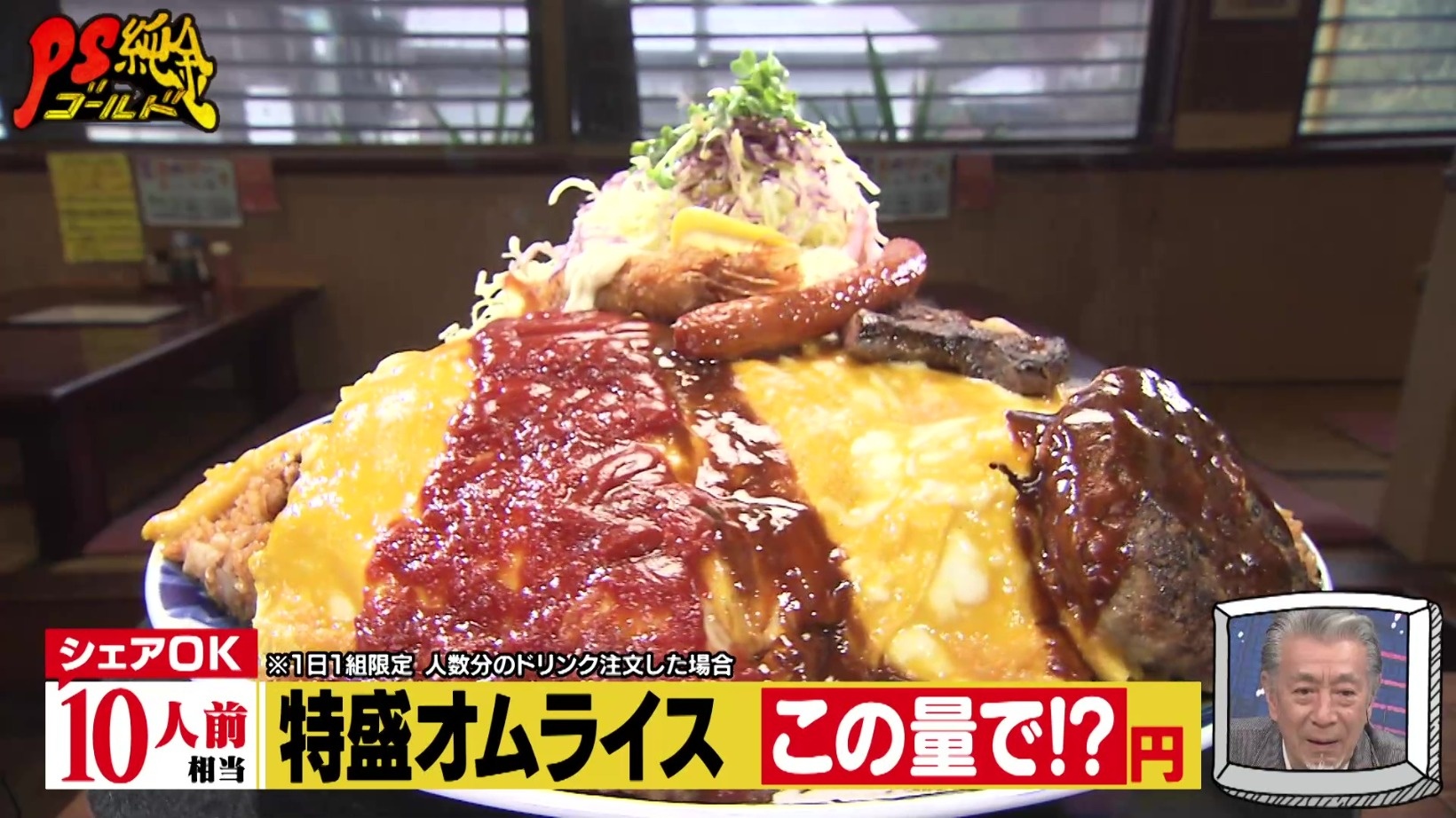 『PS純金(ゴールド)』え?この量でこの値段!?ステーキ付き2.5kgオムライス&地元人気1mブラジルピザ