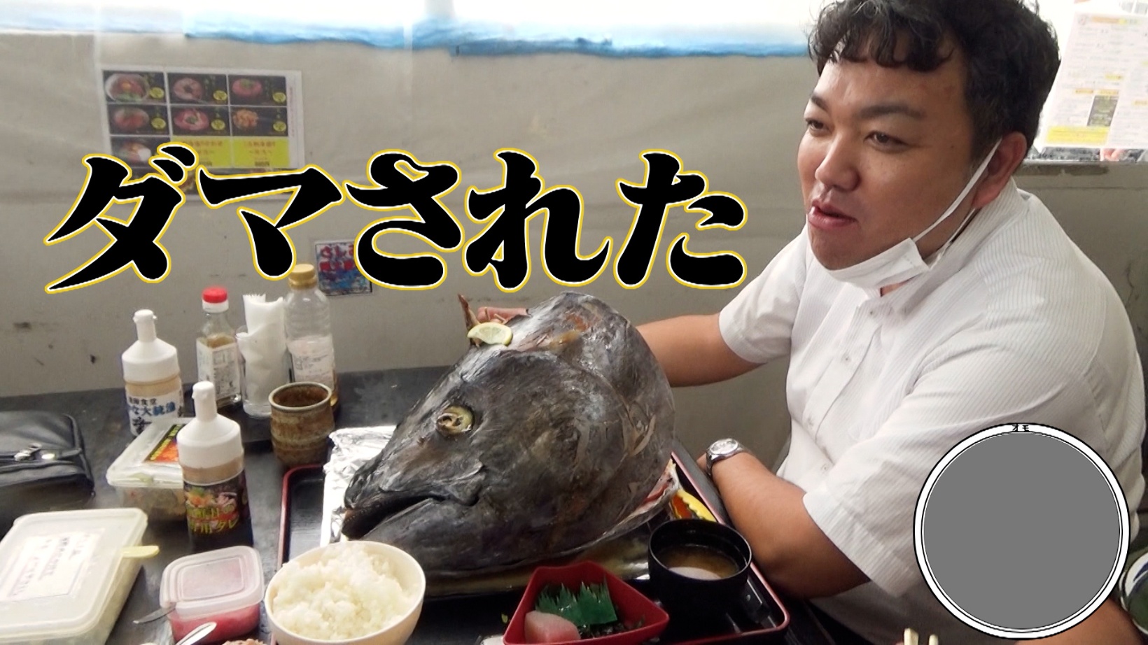 「本日の塩焼き定食(大・1,580円)」を注文すると、運ばれてきたのはなんと巨大な本マグロの頭!普通の塩焼きを想像していたお客さんは思わず「無理でしょ!?」「ダマされた」と驚きます。