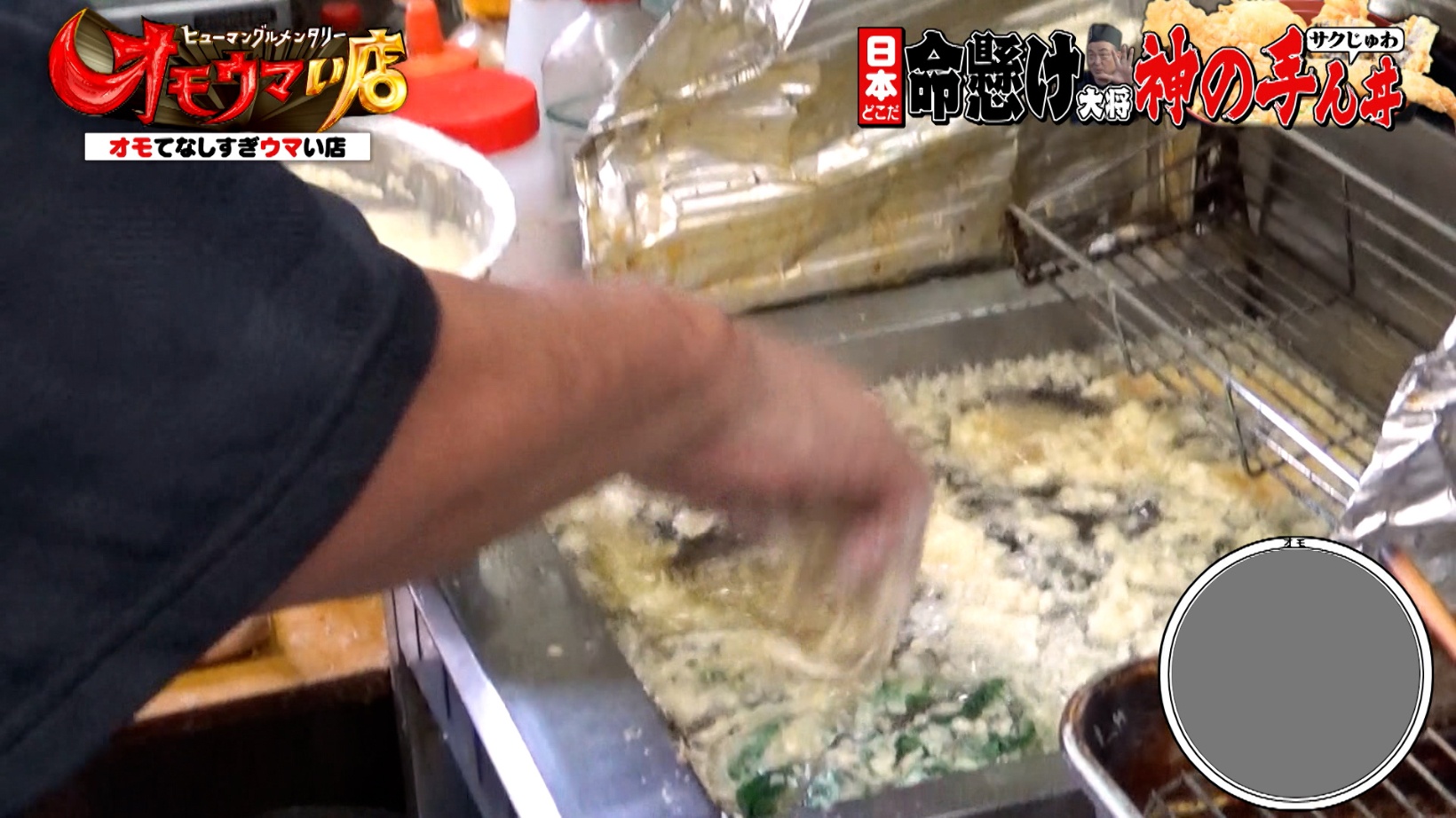衣の形を整える際、菜箸は使わず、なんと素手で仕上げていきます。油を直接触る様子に、番組スタッフが「熱くないんですか?」と尋ねると、店主は「全然」と言います。さらに、「どうして素手で油を触るのか」と聞くスタッフに「男らしいじゃん」と笑顔で返す店主。スタジオからは思わず笑いが起こります。