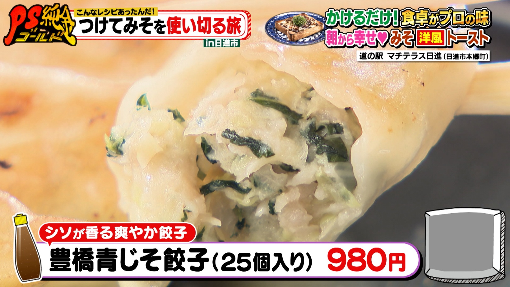 岡崎の老舗がつくる納豆「ゴールドA(220円)」には、みそとからしを。そして、シソがさわやかに香る「豊橋青じそ餃子(25個入り・980円)」には、みそとラー油を合わせます。